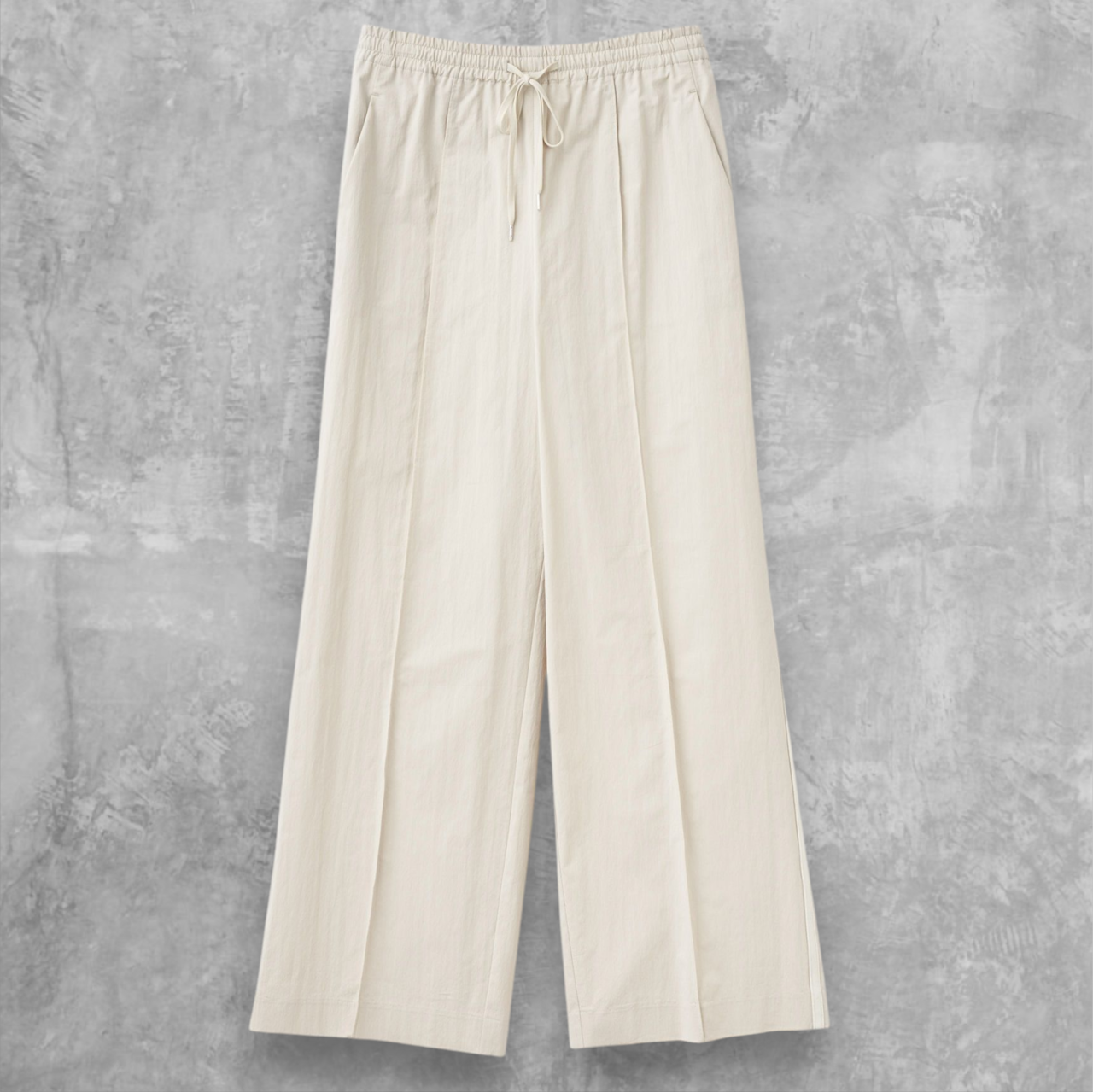 ウエストゴム仕様のため、ストレスフリーな履き心地を追求しました。デイリーユースにも特別なお出かけにも使える万能アイテムです!デニムやスニーカーと組み合わせることで、トレンド感のあるスタイルが楽しめます。日常使いからアクティブなシーンまで幅広く対応できる一着です。