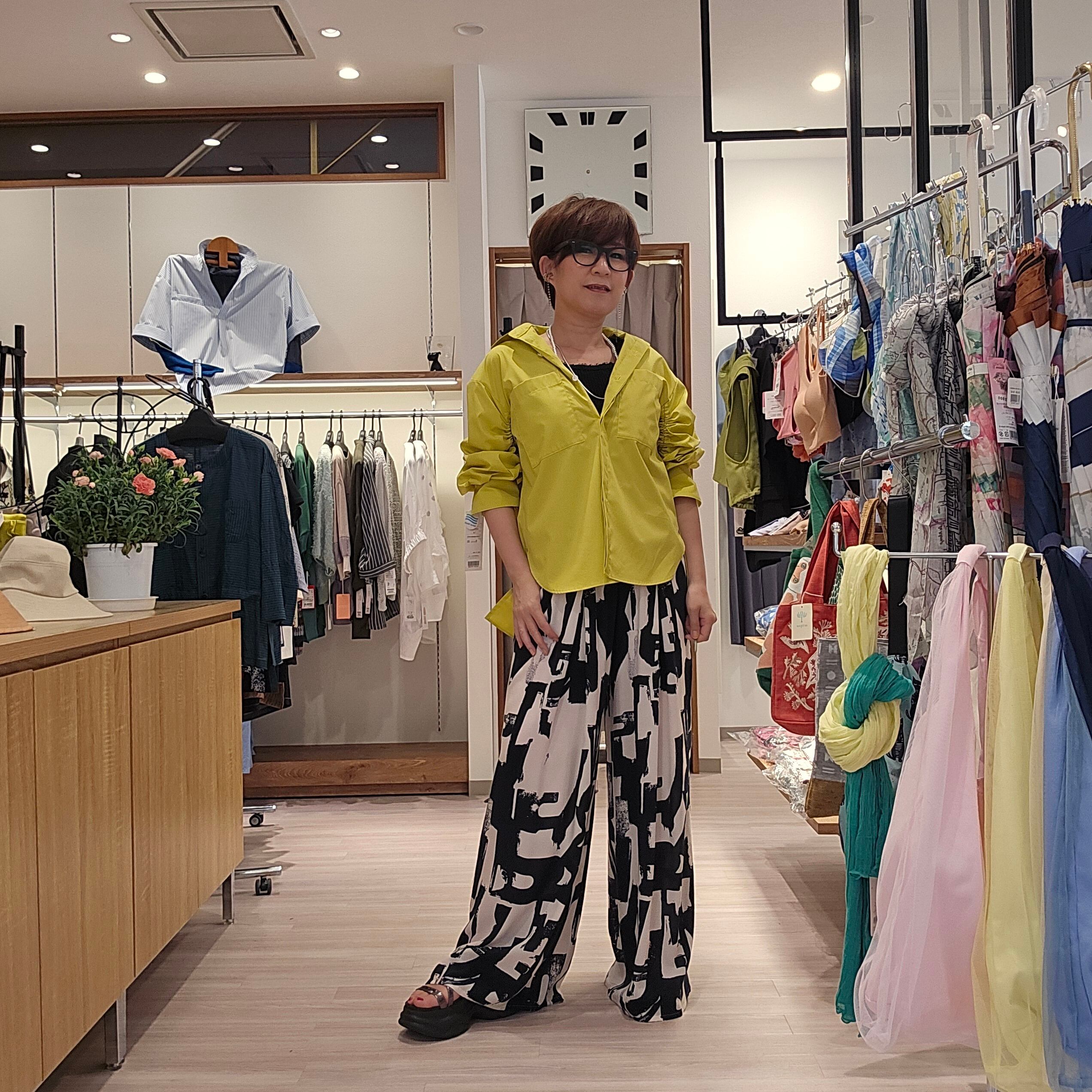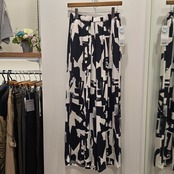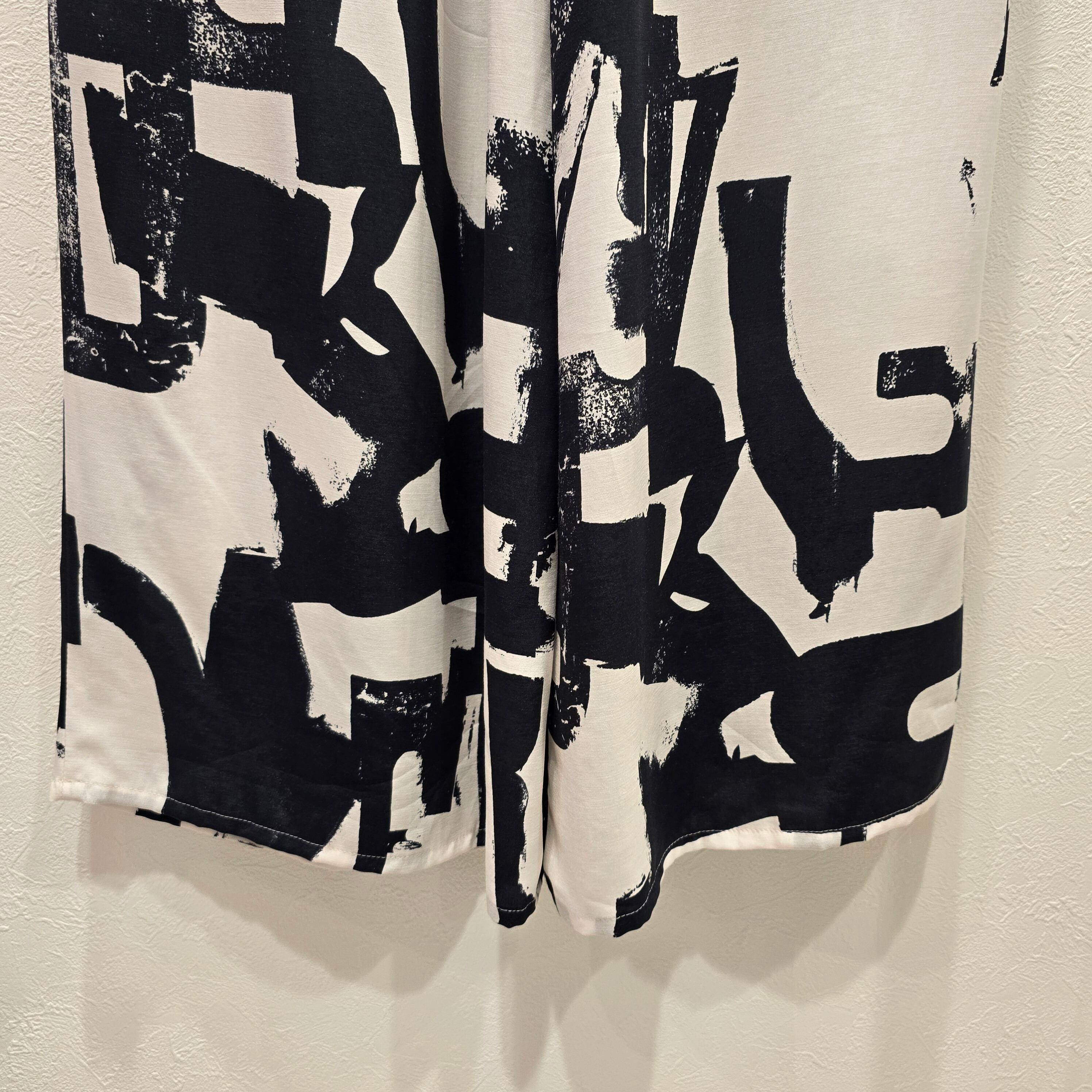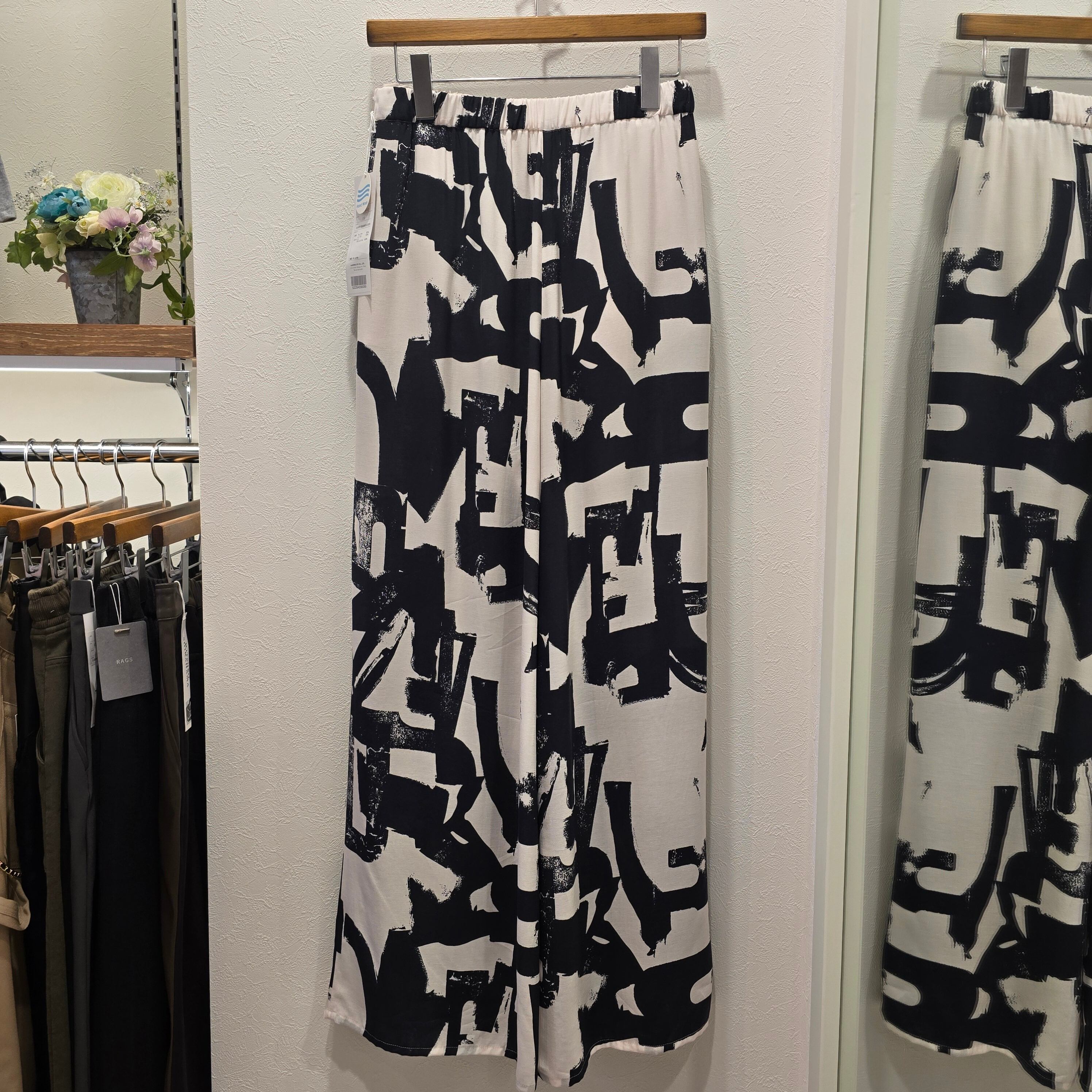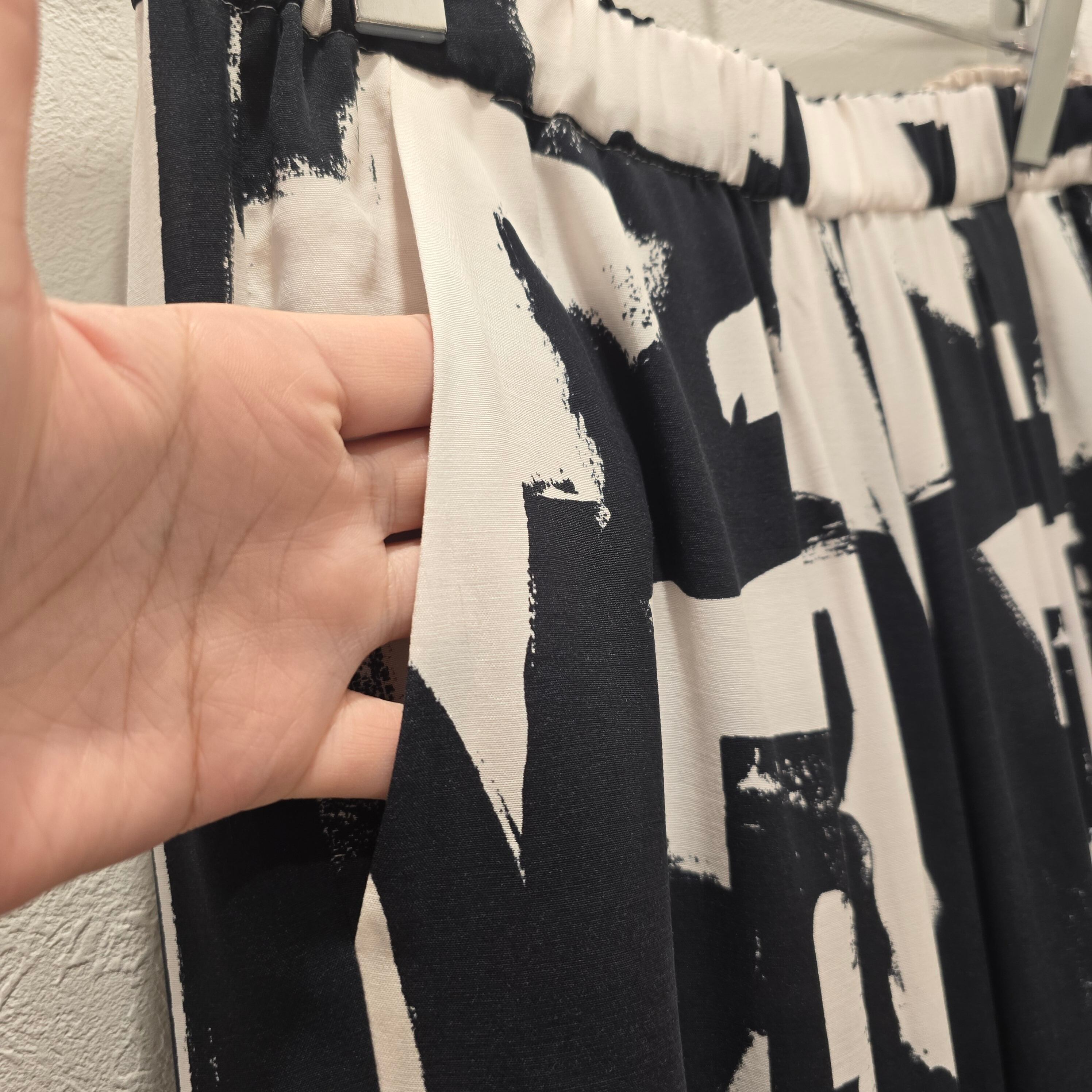 この柄パンツ【シラハマリツコ】は、ウエストが総ゴム仕様で、リラックス感たっぷりのはき心地が魅力です。白黒のシンプルながらも遊び心のあるパターンが、コーディネートに個性をプラスします!さらっとした素材が肌に優しく、シーズンを通して快適に着用できるアイテムです。