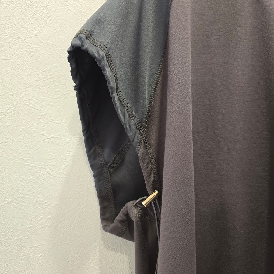 ドロストで形を変えることが出来るので、コーデに合わせていろんなラインを楽しめる1枚です
