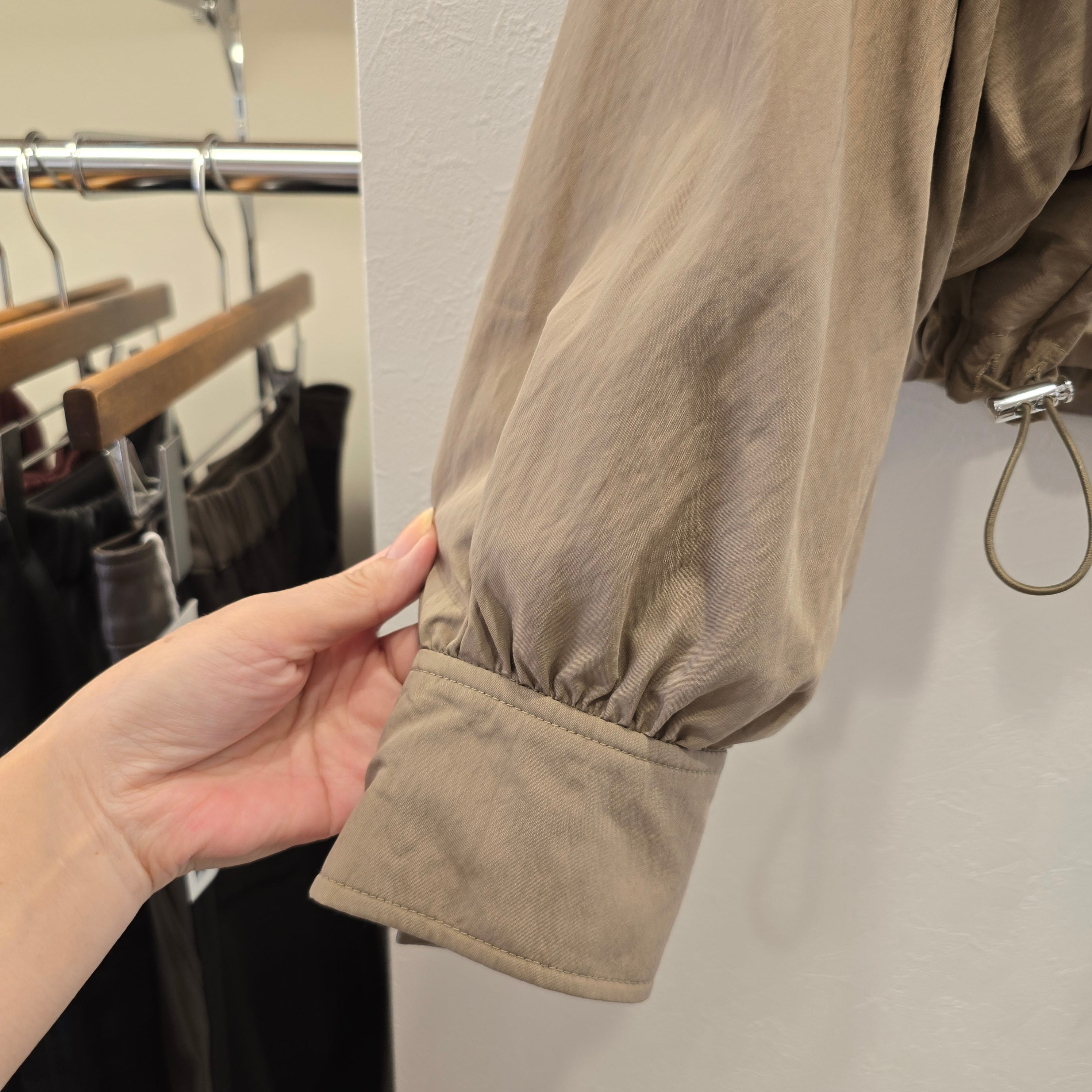 この「コットンナイロンブルゾン」は、適度なスポーティーさと女性らしさを兼ね備えた一枚です!ドルマンスリーブと裾に施されたたっぷりのギャザーが、柔らかな印象を与えつつ、動きやすさも追求しました。メッシュの裏地が通気性を高め、快適な着心地を実現しています。