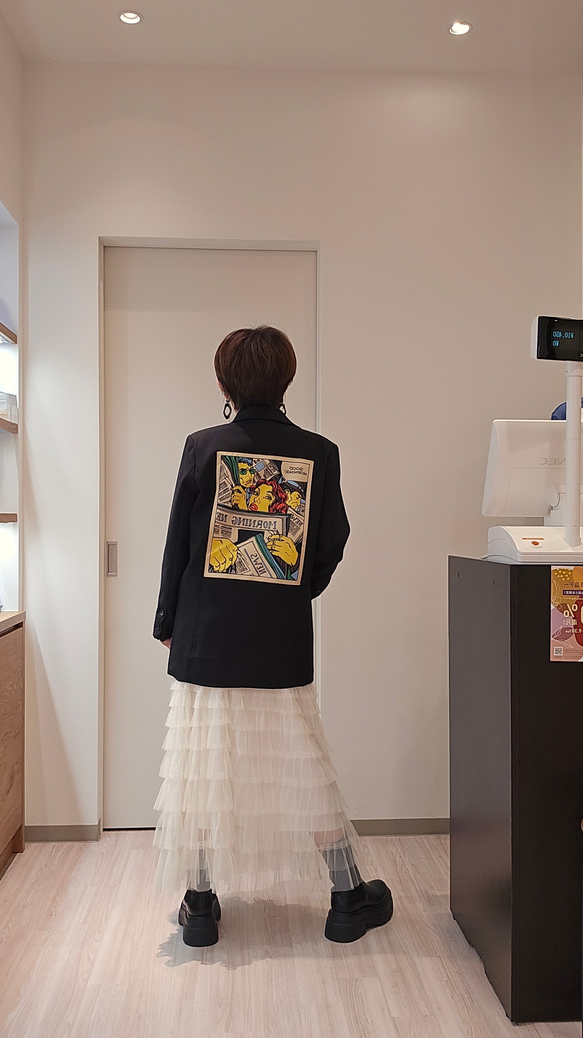 独特のデザインは、ティアードスカートなどの甘めのボトムスとも相性抜群で、さまざまなスタイルを引き立ててくれること間違いなしです!デイリーユースや特別なシーンでも活躍するこのジャケットを手に入れて、あなたのスタイルに新たなアクセントを加えてみてはいかがでしょうか!