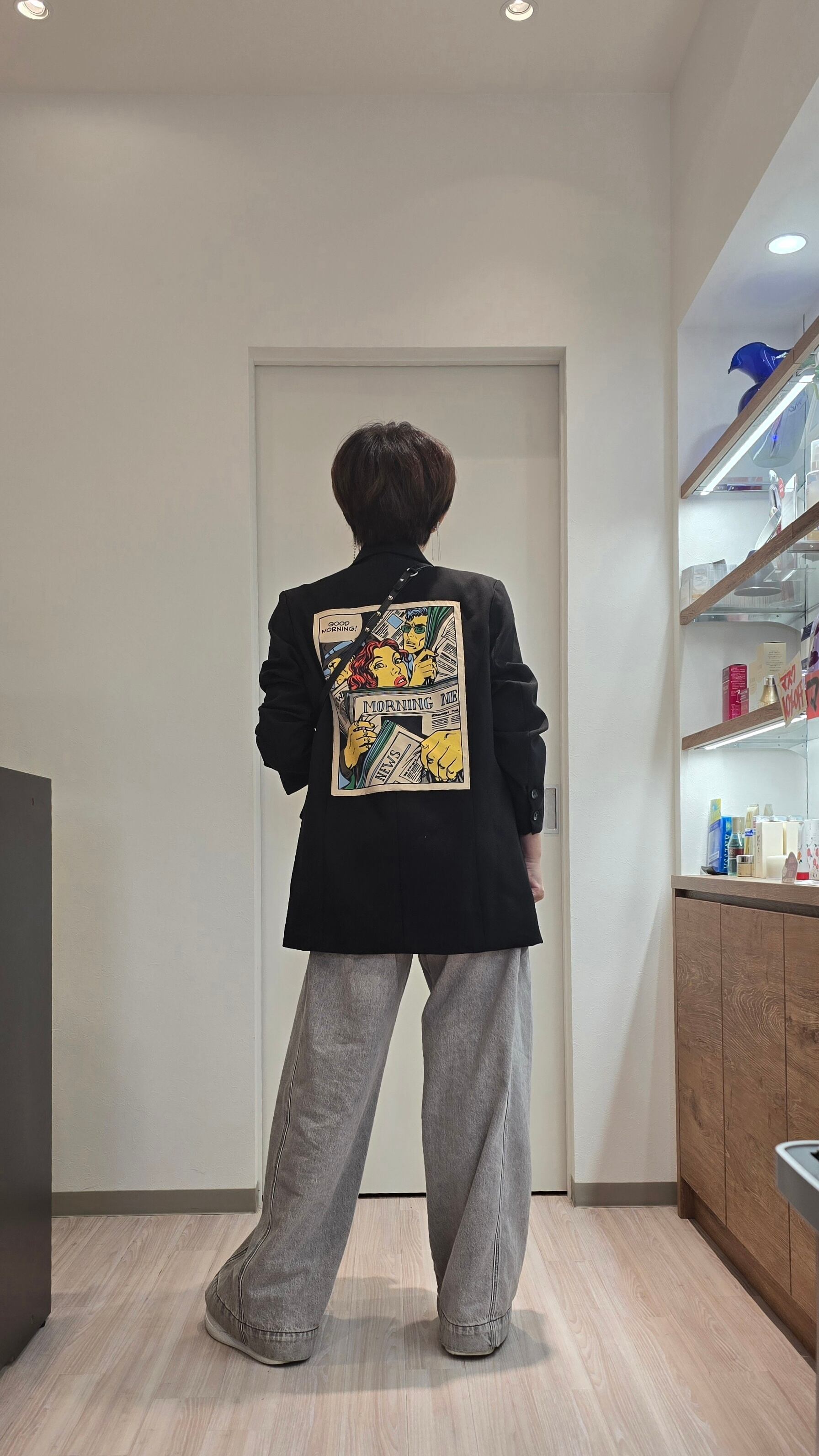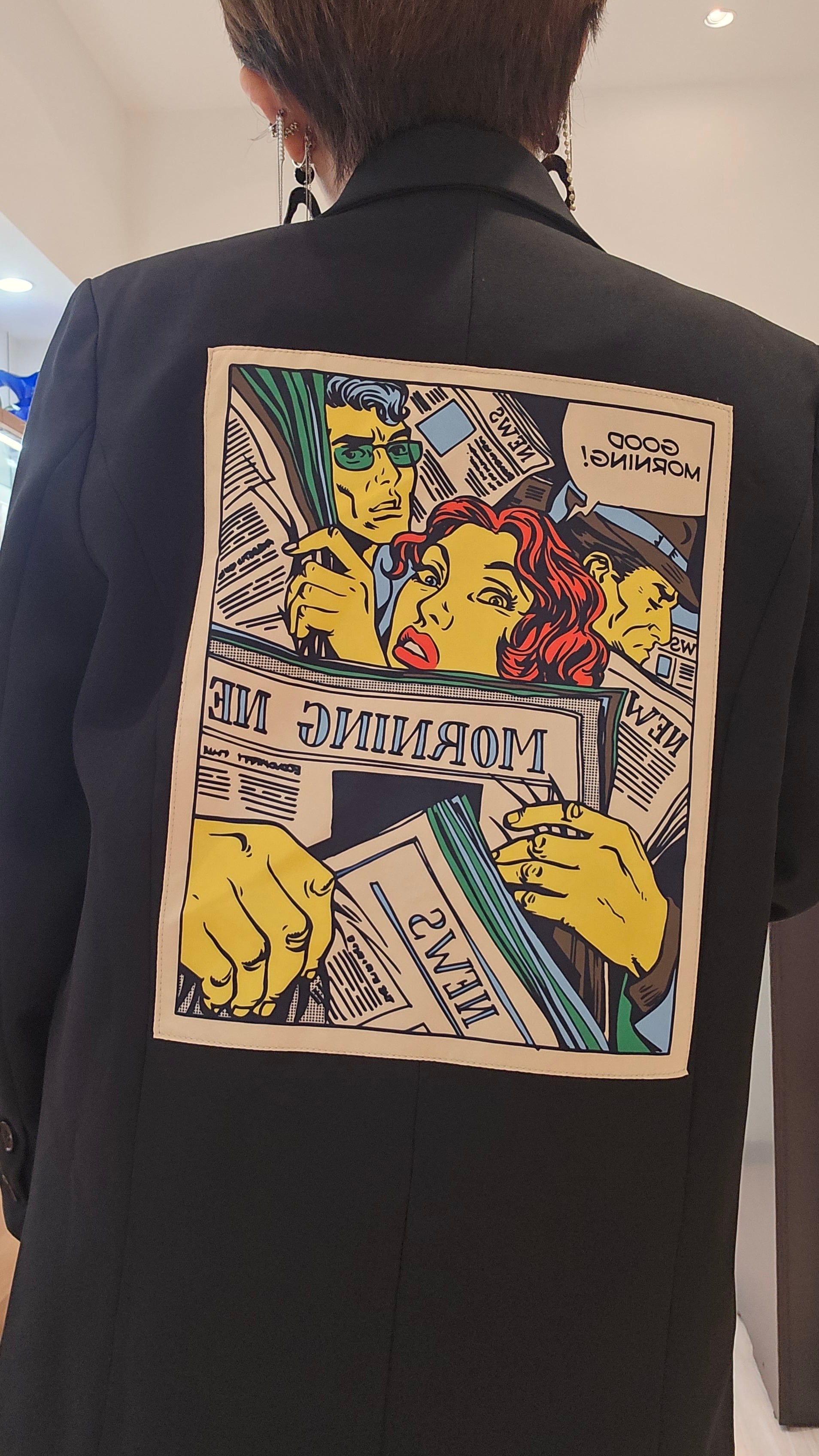 この「【7days】ステッカーデザインテーラードジャケット」は、個性的なステッカーデザインが一際目を引くアイテムです!バックに大きなステッカーが施されており、周囲とは一線を画すおしゃれを楽しむことができます。また、しっかりとしたテーラードの形が美しいシルエットを作り出し、上品さとカジュアルさの絶妙なバランスを実現しています。