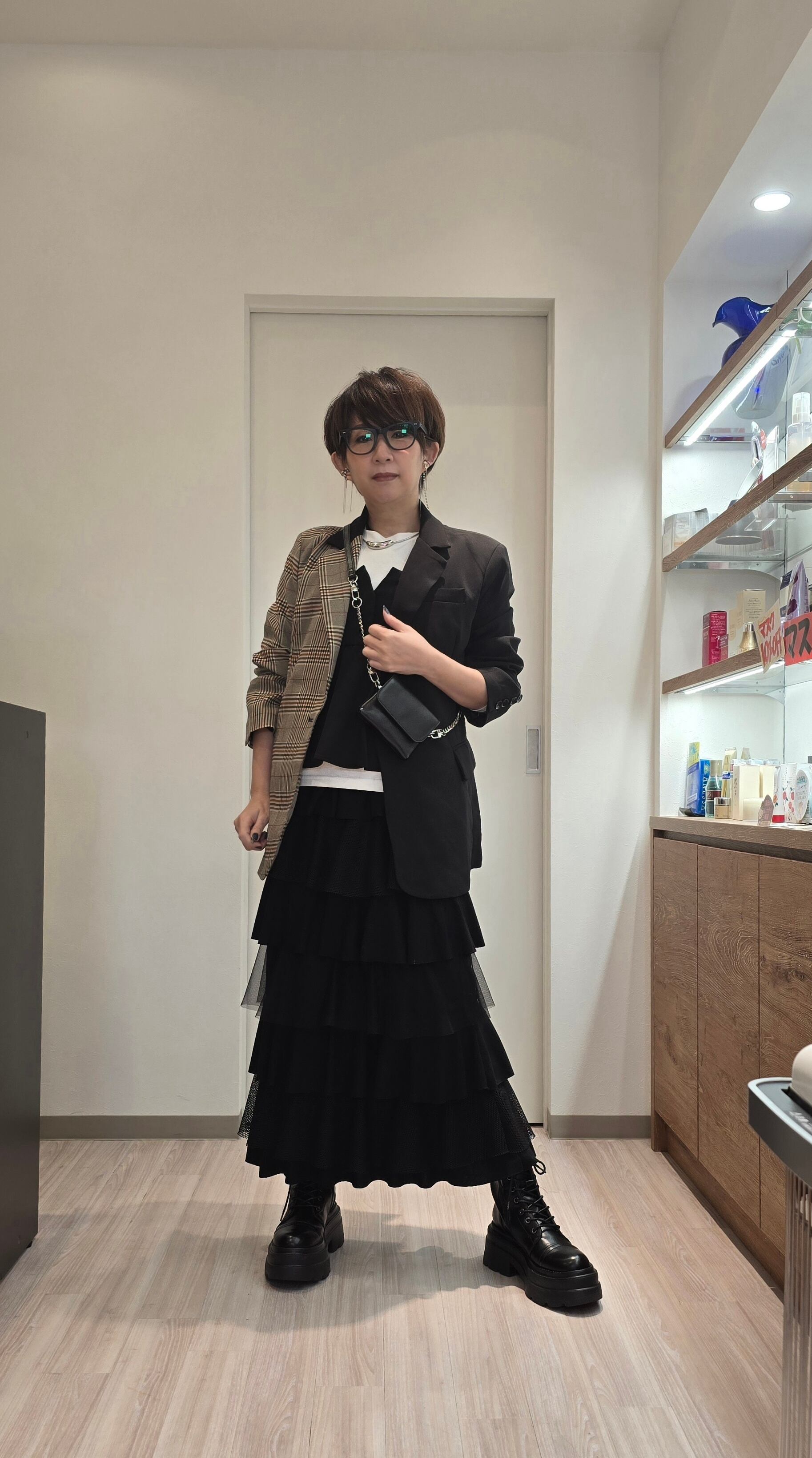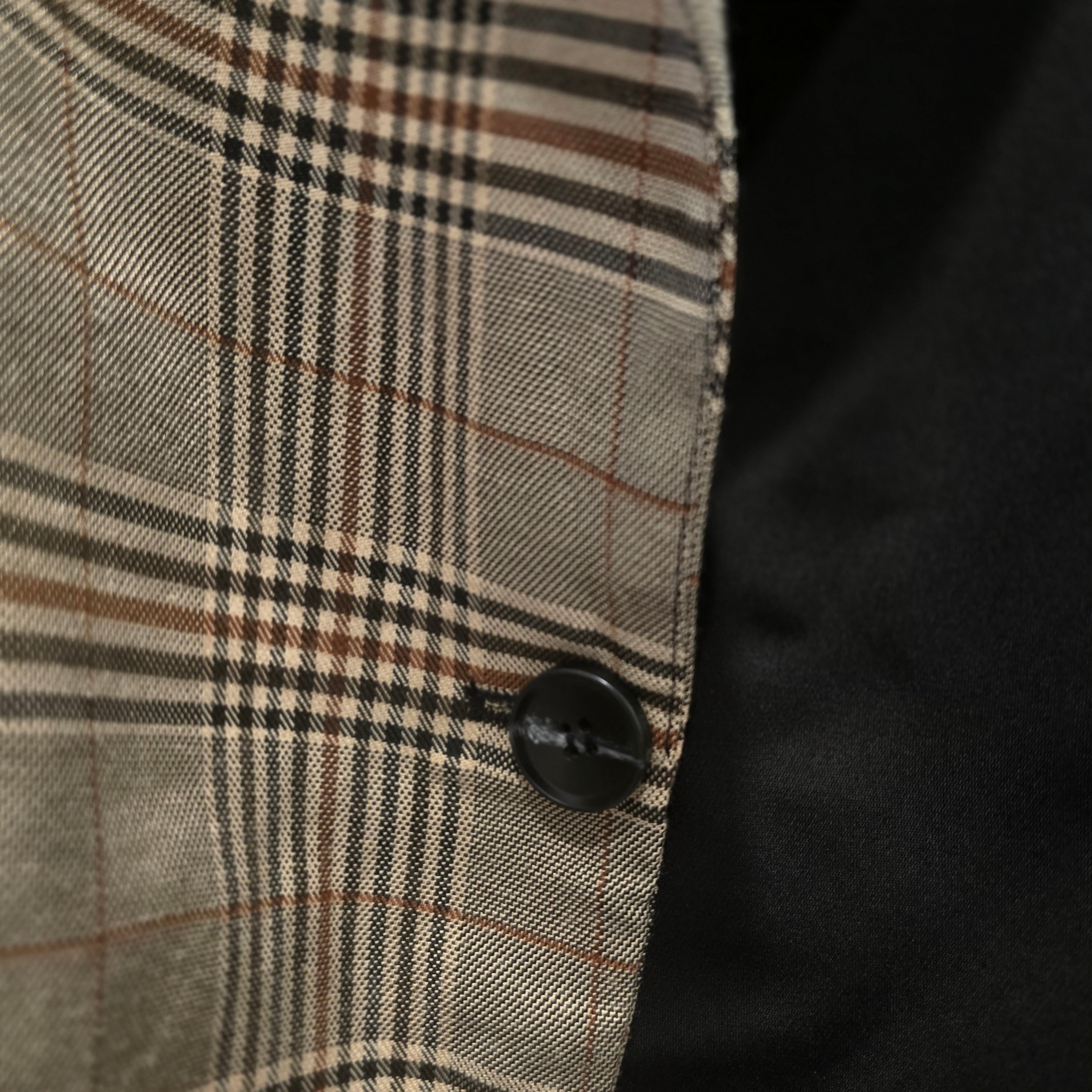 スタイリッシュなテーラードデザインは、ちょっとしたお出かけからビジネスシーンにもオススメ。シンプルなトップスやパンツと組み合わせるだけで、上品な印象を与えることができます。チェック柄とブラックの絶妙なバランスは、まさにお洒落の提案です。