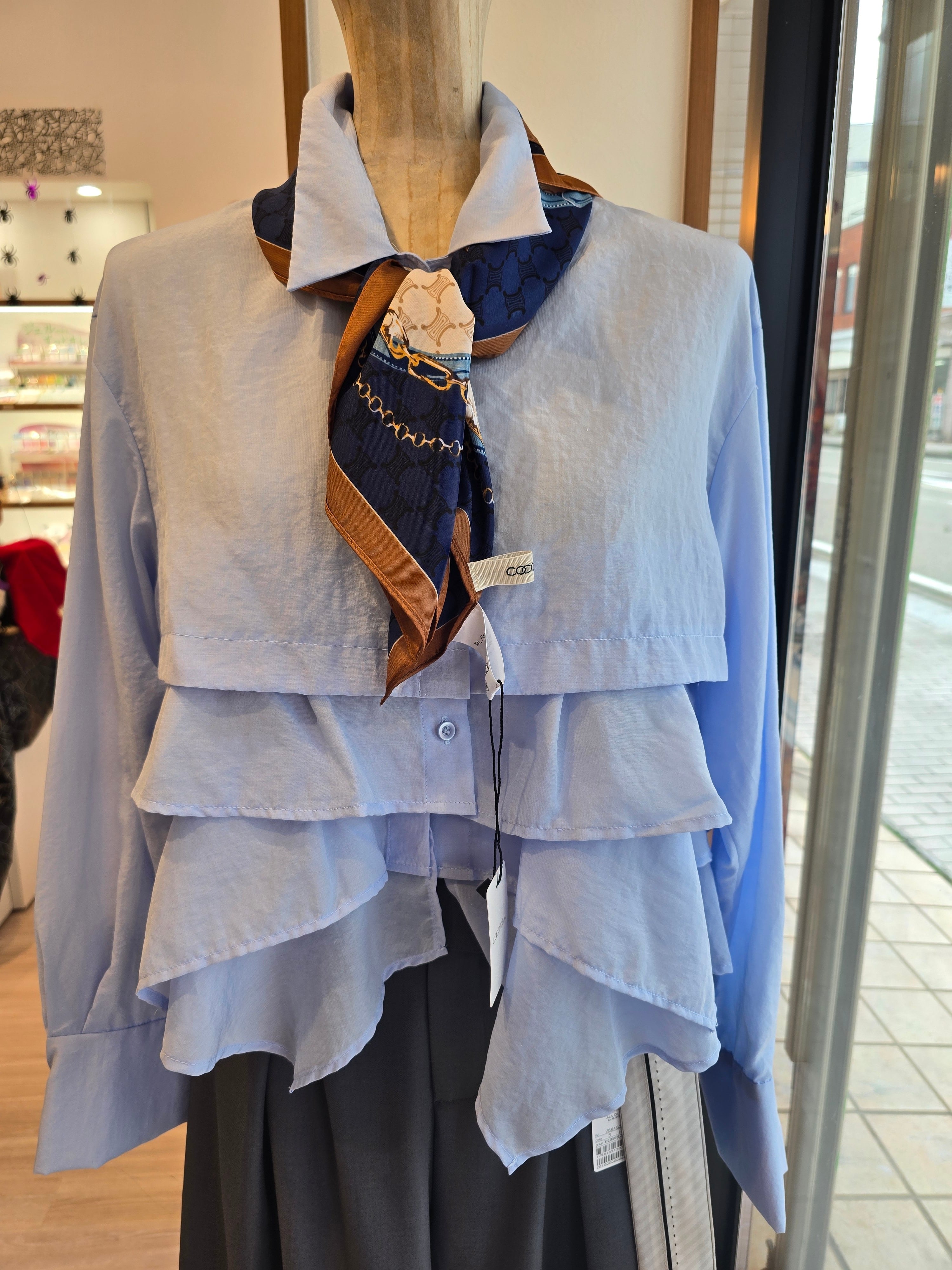 この「【ヘムフリルシャツ】」は、シアー感とナチュラルなしわ感が軽やかな印象を与えるフリルシャツです!フリルをティアードにデザインすることで、華やかさを加えた一着は、1枚でも着映える存在感を持っています。また、軽やかな素材感が動くたびに魅力を放ち、カジュアルな日常スタイルから特別なシーンまで幅広く活躍すること間違いなしです!