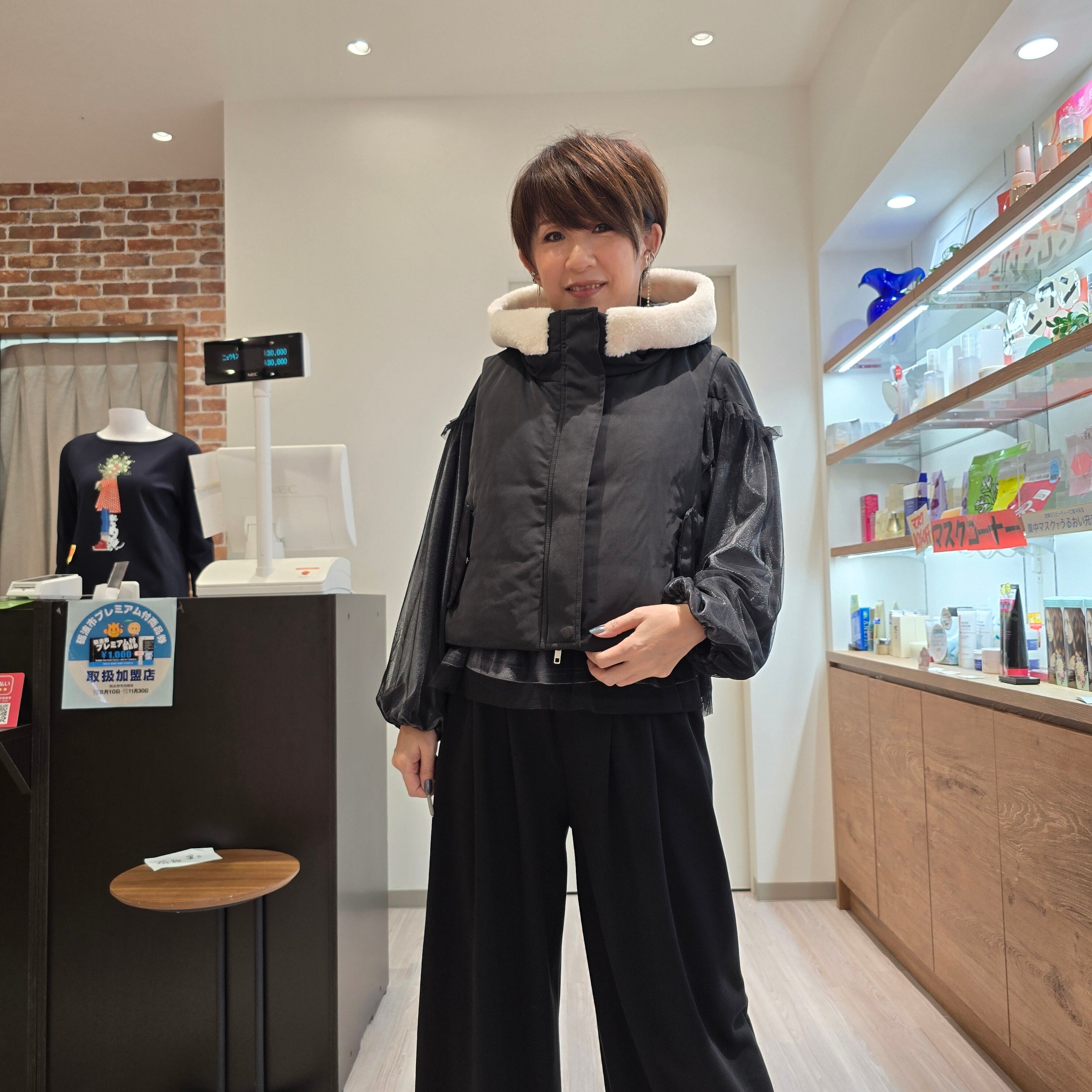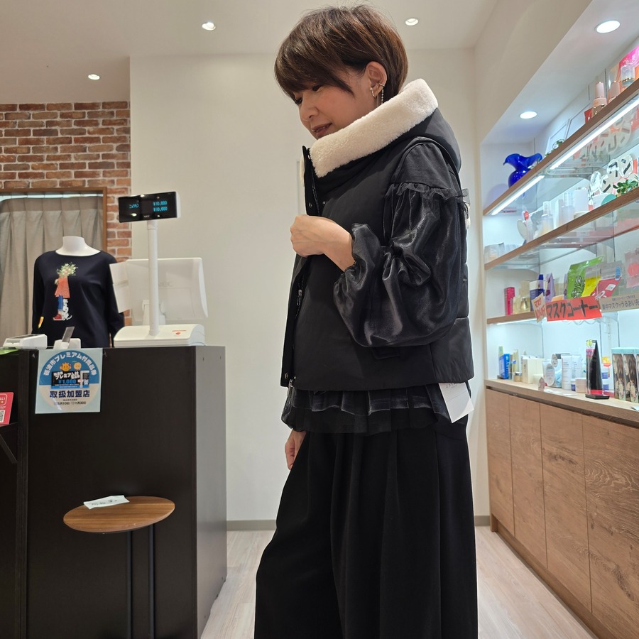 シンプルながらも存在感のあるこのベストは、カジュアルな日常使いからお出かけのスタイルまで幅広く活躍すること間違いなしです!ボトムスとのコーディネートも簡単で、デニムやスカートとも相性抜群。これを着るだけで、あなたの冬の装いが一段とお洒落に仕上がることでしょう。