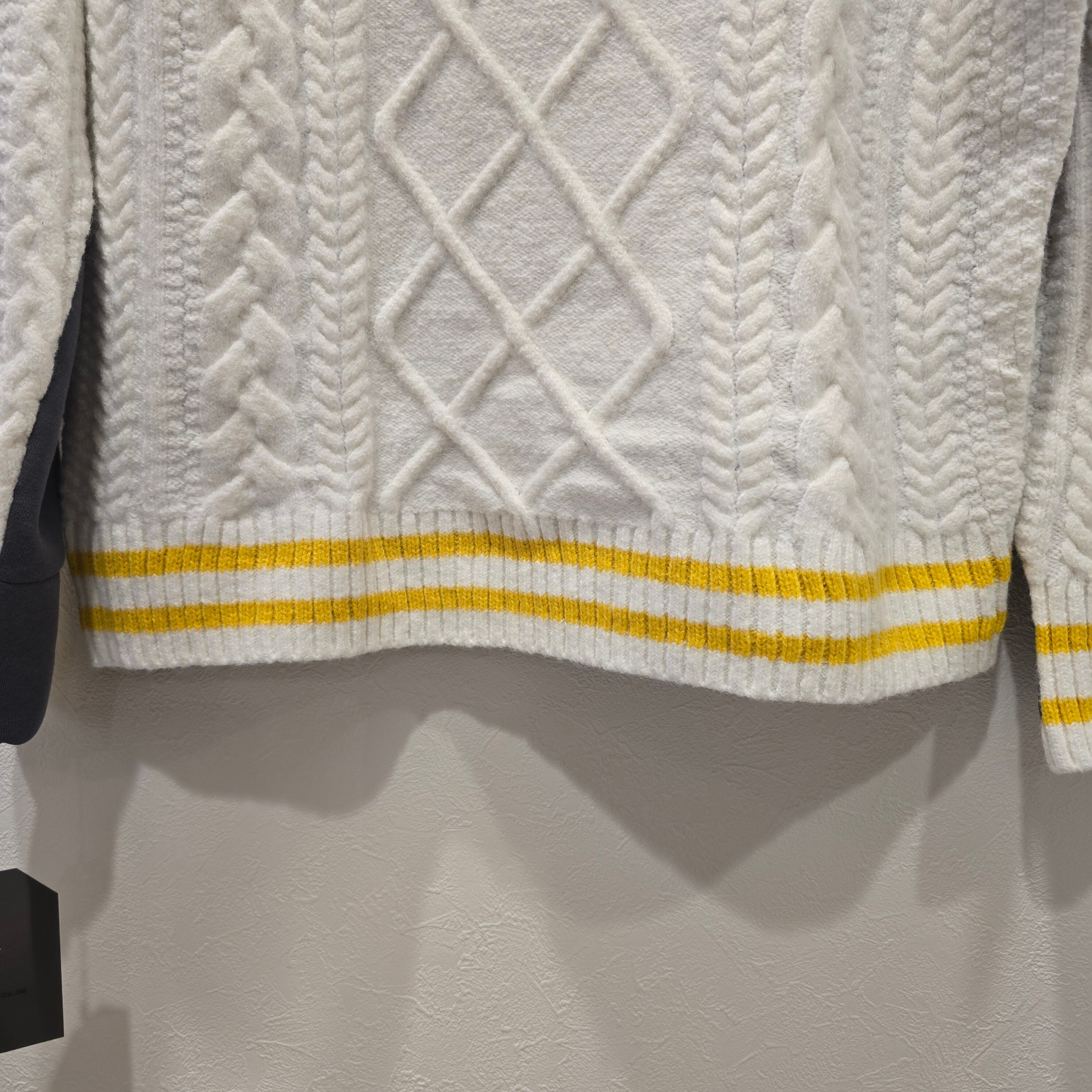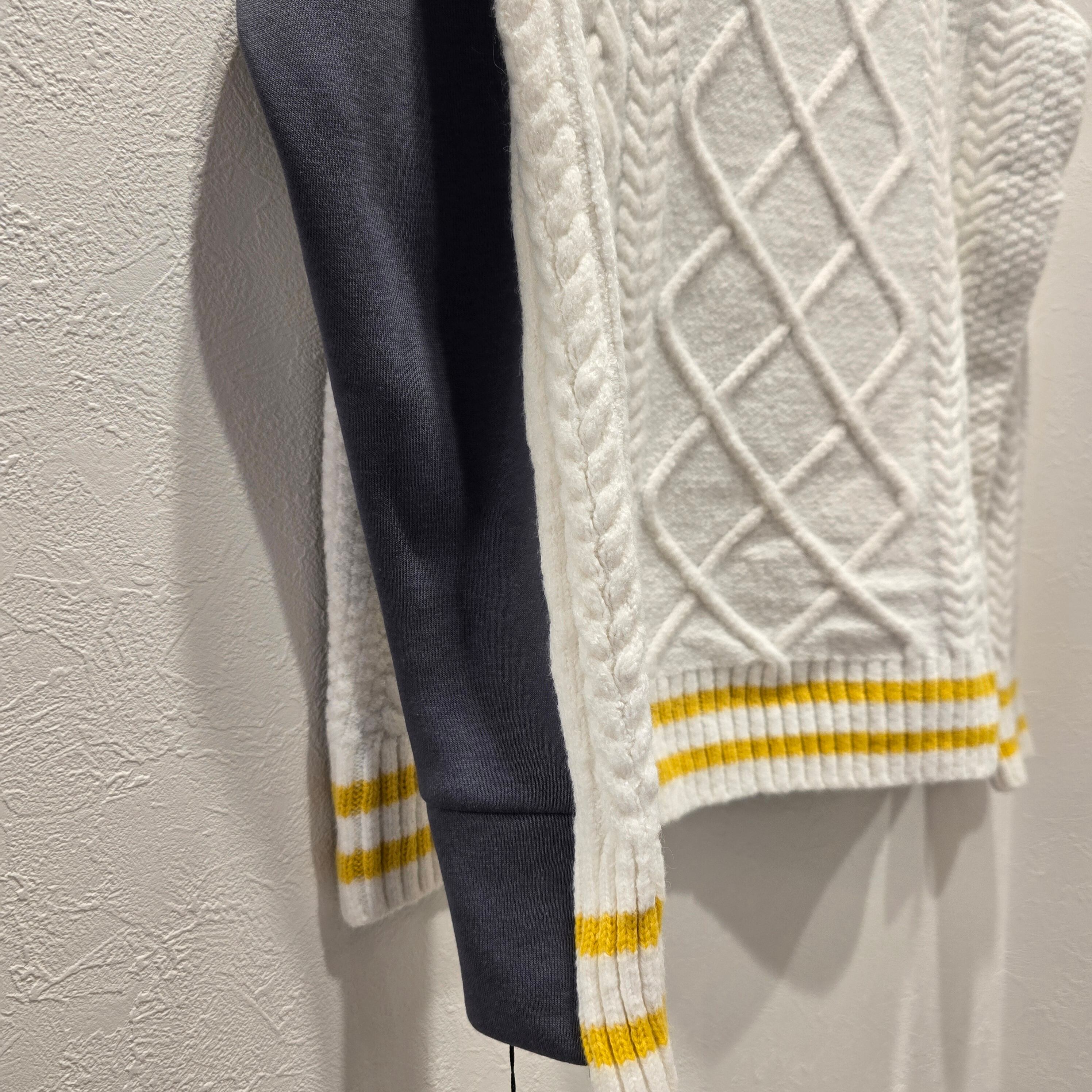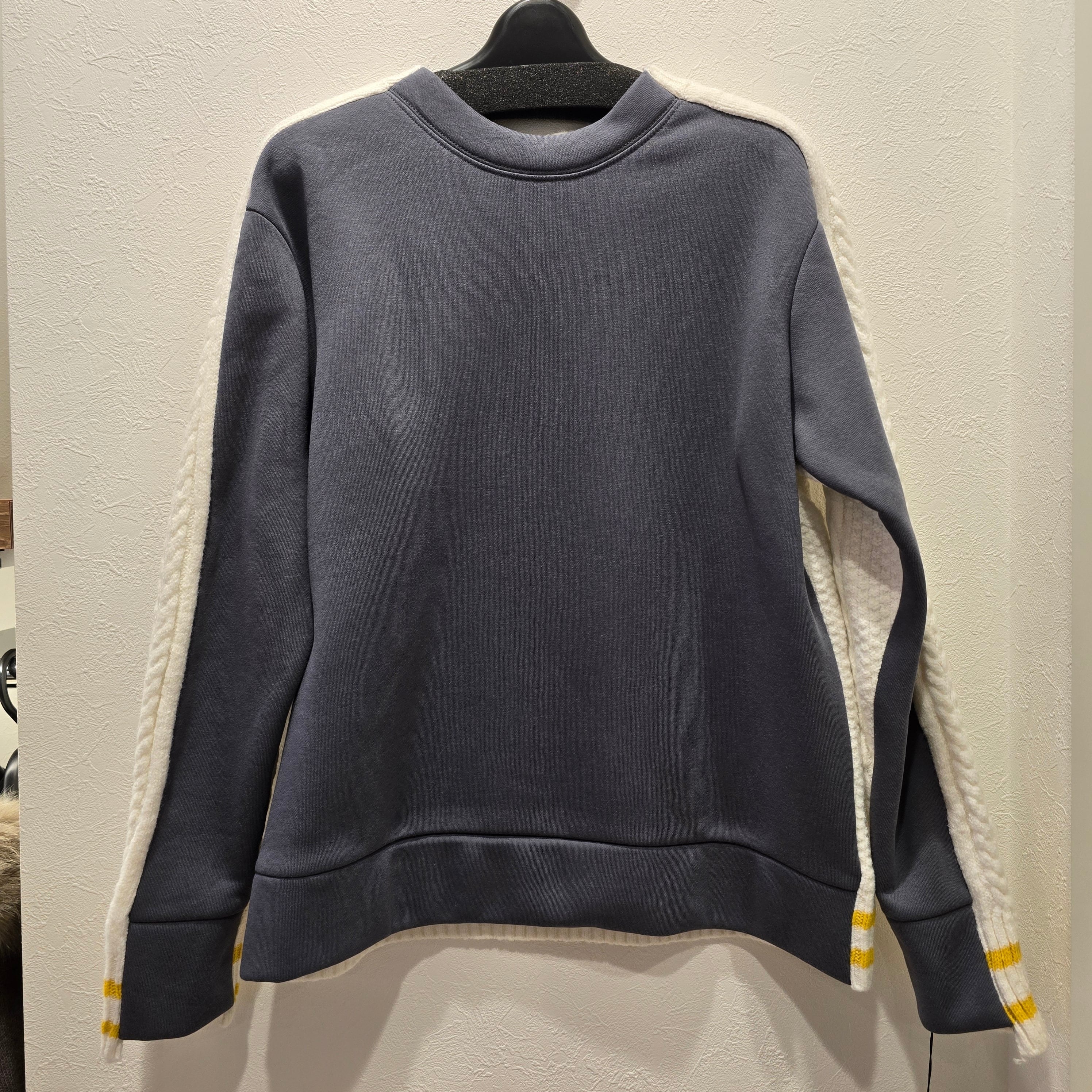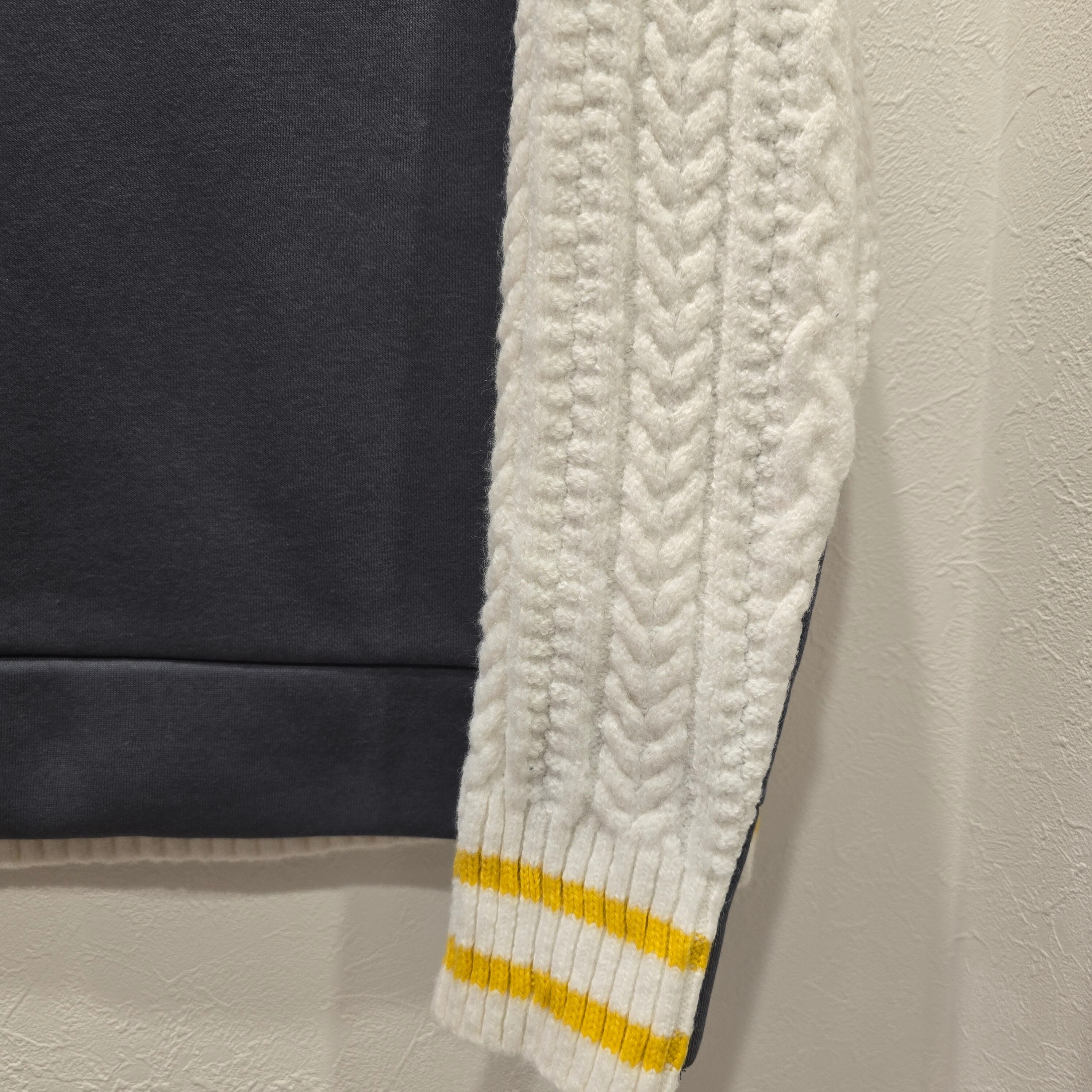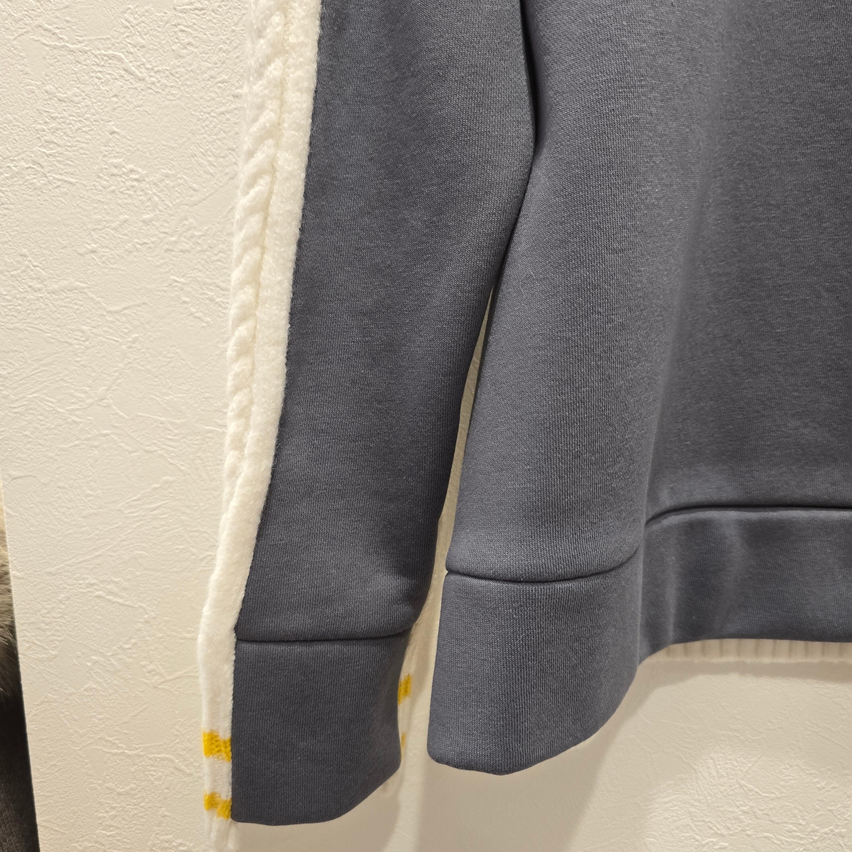 この「【Mia】ニット×カットソー」は、デイリーコーデにぴったりなオシャレなアイテムです!前身頃はトレーナーのような柔らかいグレー生地で、カジュアルな印象を与えながらも、後身頃は優しいホワイトニットが清楚さ引き立てます。裾と袖口に施された黄色ラインが可愛らしいアクセントとなり、さりげない個性を演出します。
