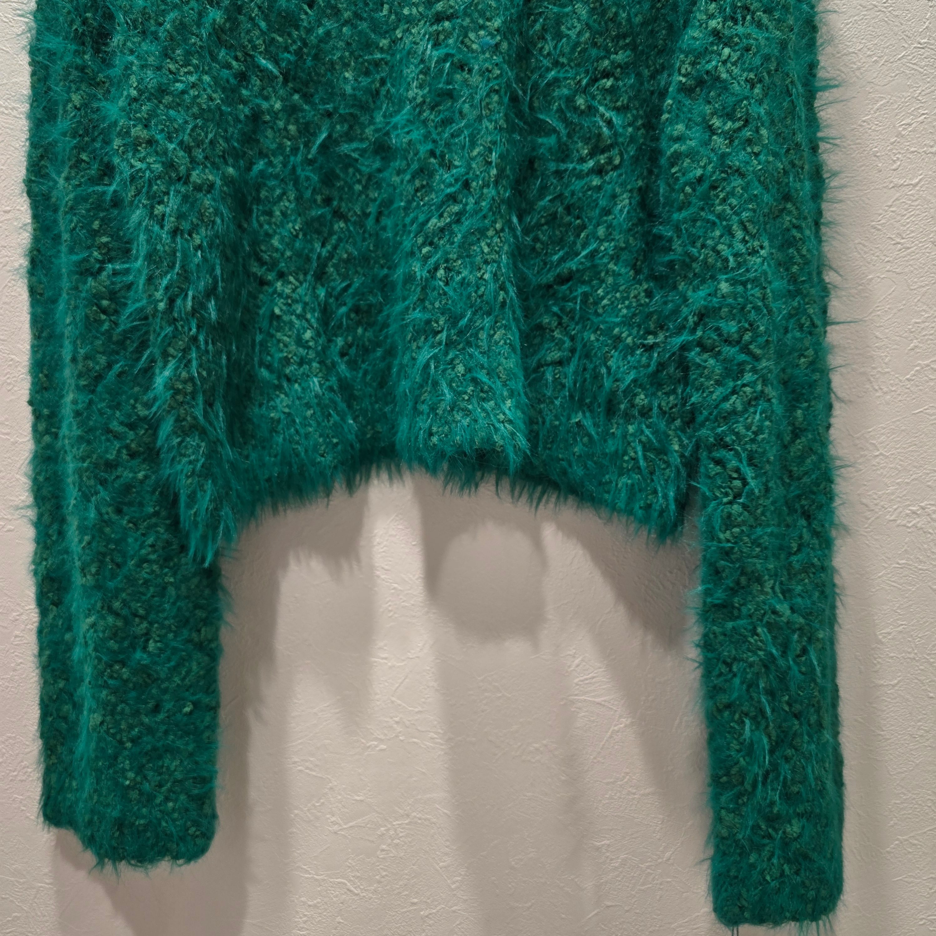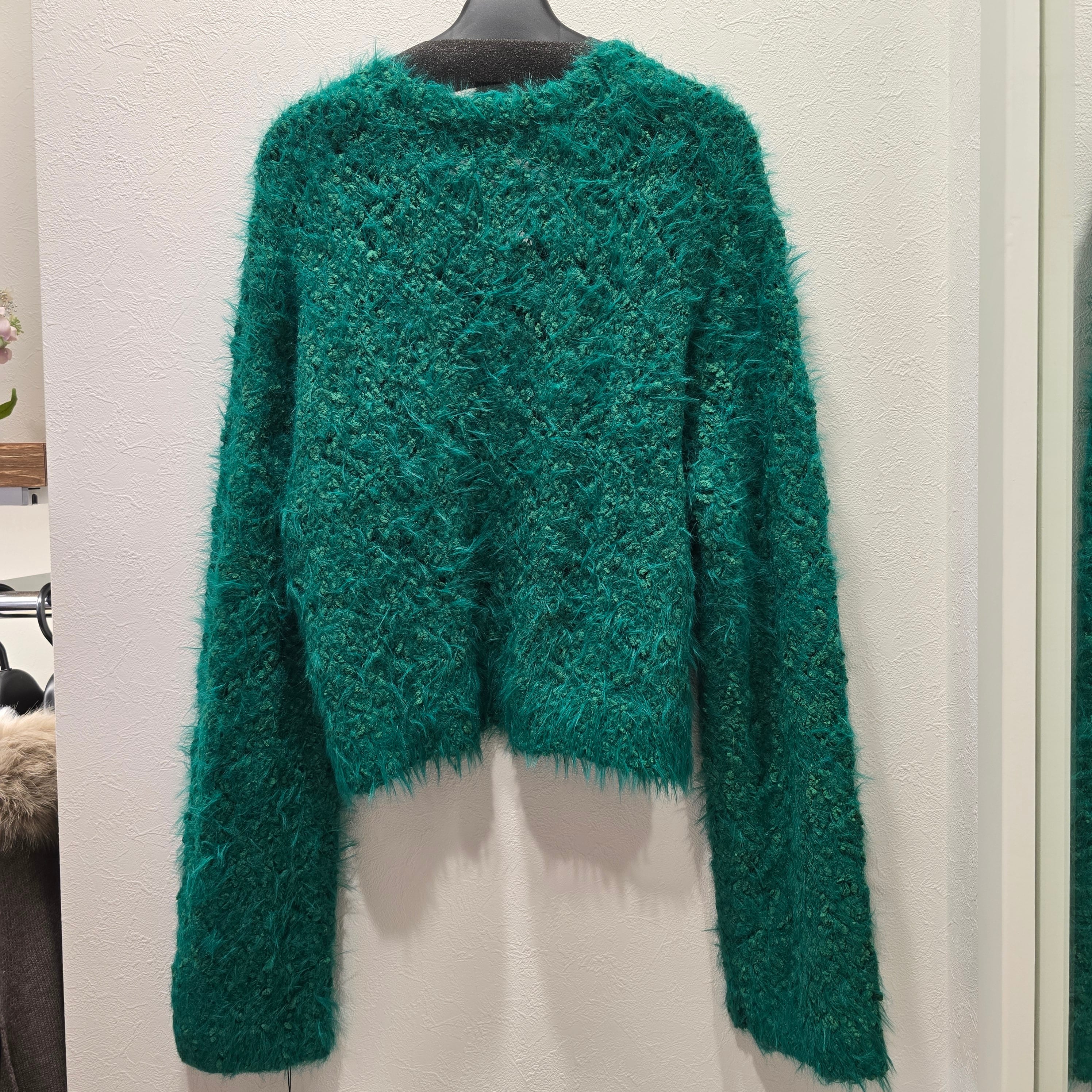 この「【Mia】ニット」は、鮮やかなグリーンが特徴のふわふわ毛並みのセーターです!短め丈でシャツやロンTとのレイヤードスタイルが楽しめ、様々なコーディネートに対応できる優れたアイテムです。柔らかな質感が心地よく、肌にも優しい仕上がりになっています。