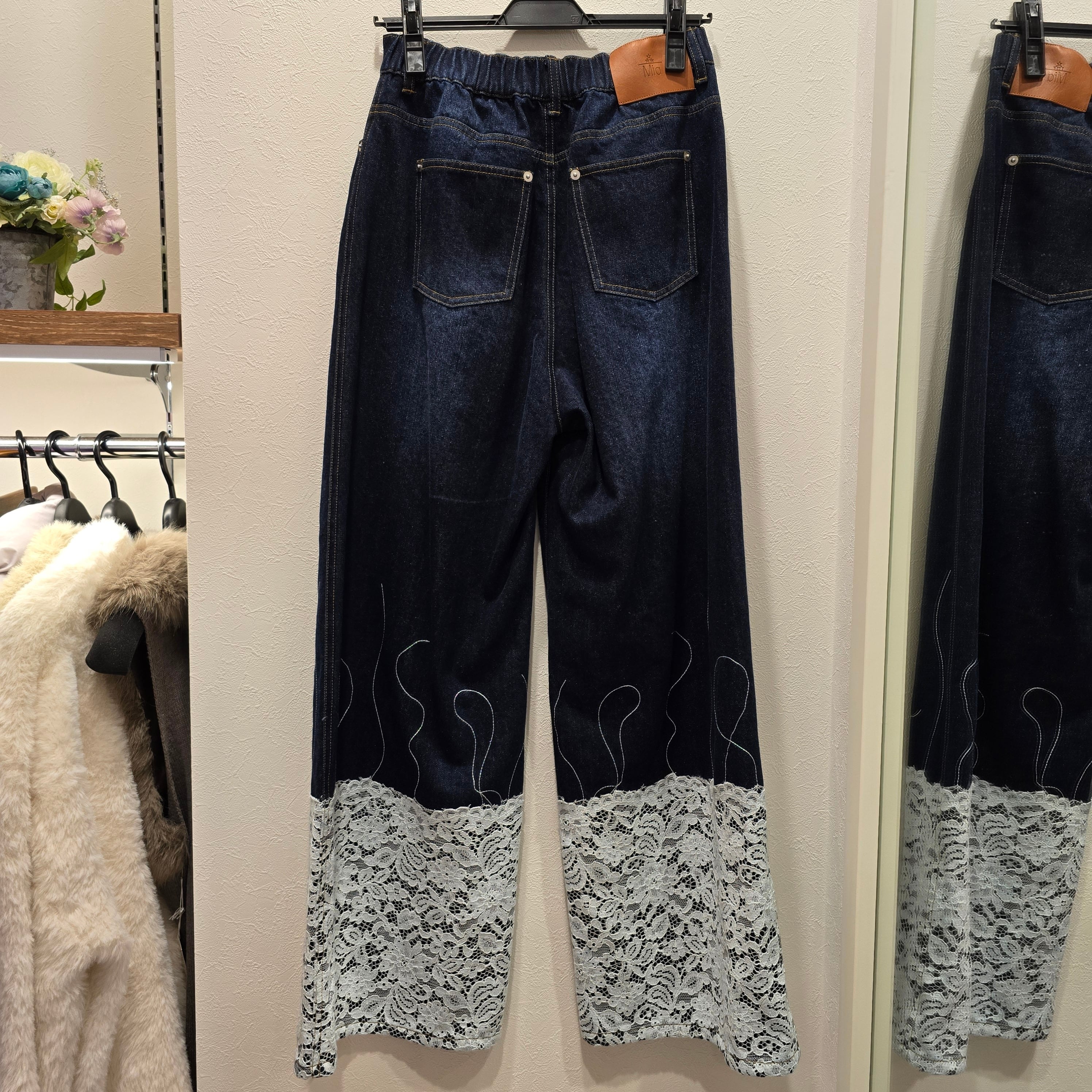 この「【Mia】デニムパンツ」は、裾のレースが特徴的なファッショナブルなアイテムです!伸縮性のないしっかりとしたデニム生地が、クラシックな印象を与えつつ、裾のレースが女性らしさを引き立てます。カジュアルなトップスと合わせるだけで、スタイリッシュなコーディネートに仕上がります。