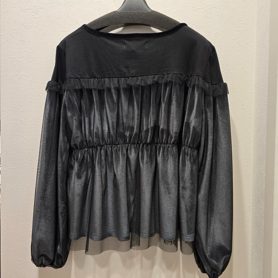 おしゃれに気を使いたい日には、シンプルなボトムスと合わせることでエレガントなスタイルに仕上がります。また、チュールの透け感が絶妙なアクセントとなり、スタイリングに個性をプラスします。ワードローブに加えることで、さまざまなコーディネートが楽しめる一枚です!