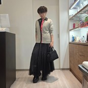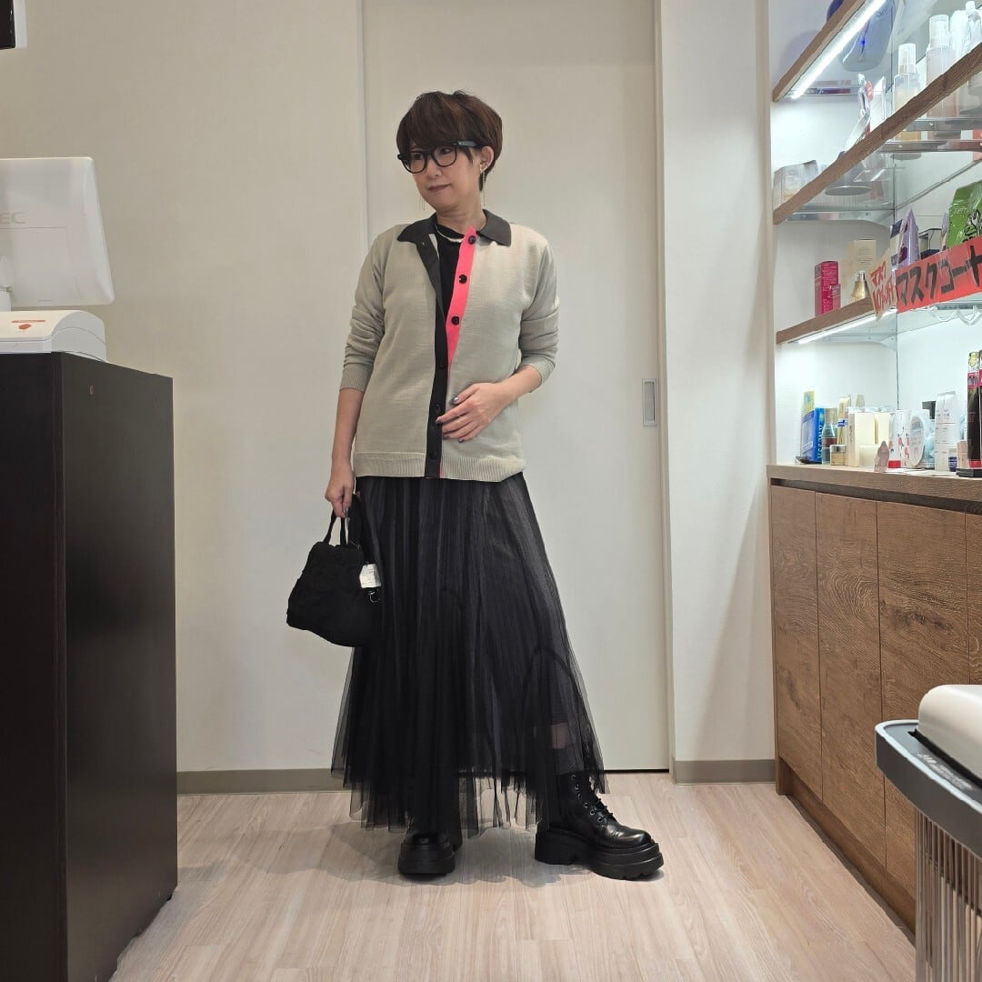 この「【フルッティフルッタ】カーディガン」は、グレージュの本体に黒とピンクの差し色が効いた、大人っぽくスタイリッシュなデザインが特徴のアイテムです!シンプルながらも目を引く配色が、コーディネートに華やかさを添えます。柔らかな素材感が心地よく、普段使いからおしゃれなお出かけまで、幅広いシーンで活躍する一枚です。