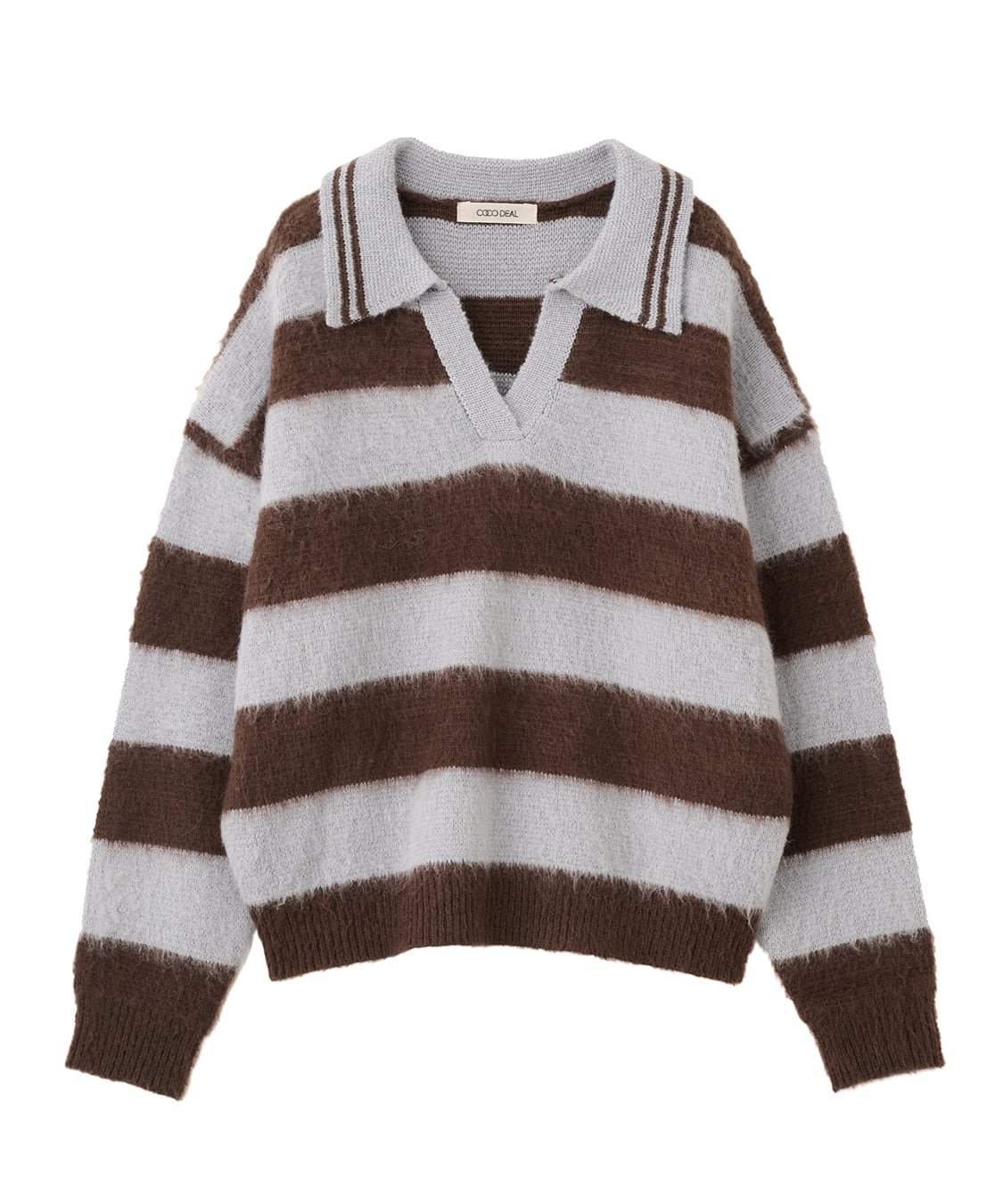 この「【ココディール】オーバーサイズスキッパーニット」は、リラックスしたオーバーシルエットが特徴のアイテムです!太いボーダーデザインが、カジュアルでスポーティーな印象を与え、コーディネートに遊び心をプラスします。起毛加工が施されているため、温かみがありながらも、軽やかに着こなすことができる嬉しい一枚です。