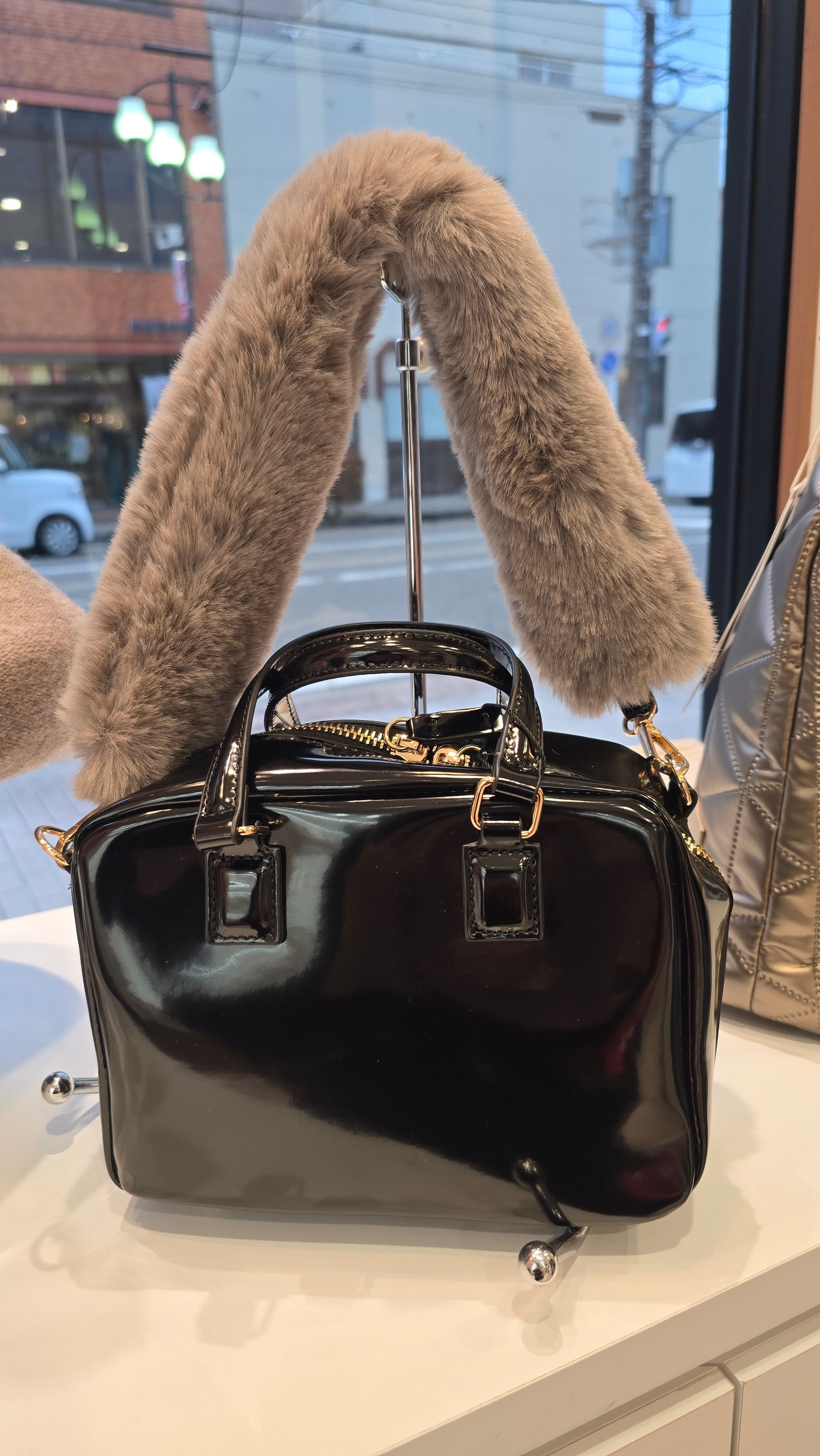 この「ファーショルダーボストンバッグ」は、上質な光沢感のあるレザーが特徴のアイテムです!アクセサリー感覚で楽しめるふわふわファーのショートストラップハンドルが、可愛らしさをプラスし、コーディネートを一層華やかに演出します。カジュアルからフォーマルまで幅広いスタイルにマッチし、日常使いにもお出かけにもぴったりです。