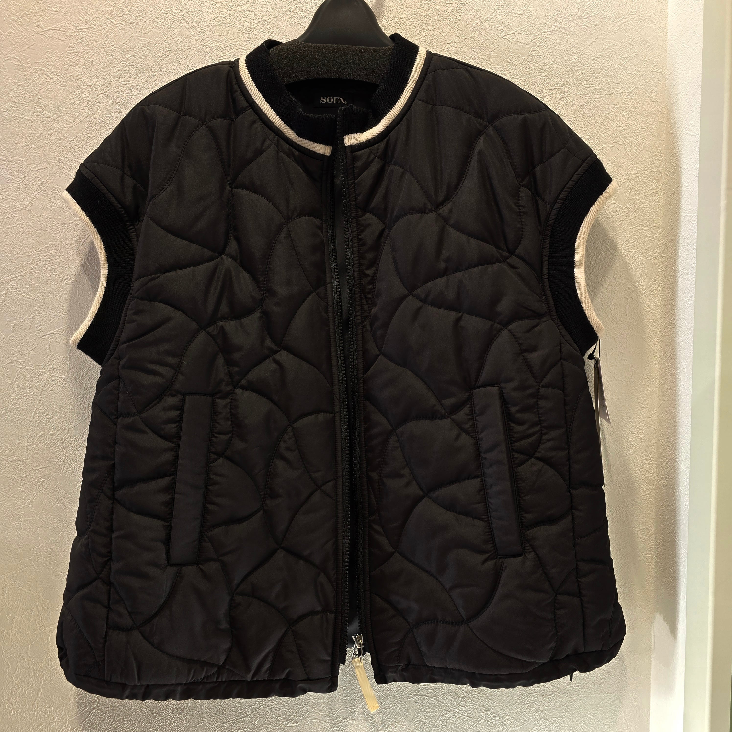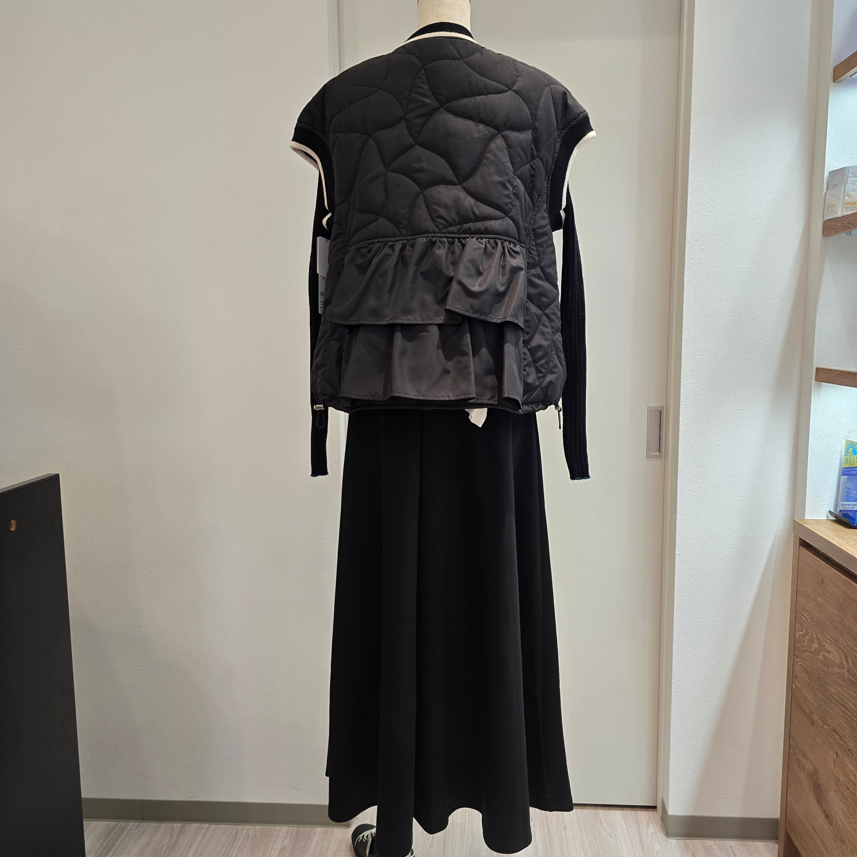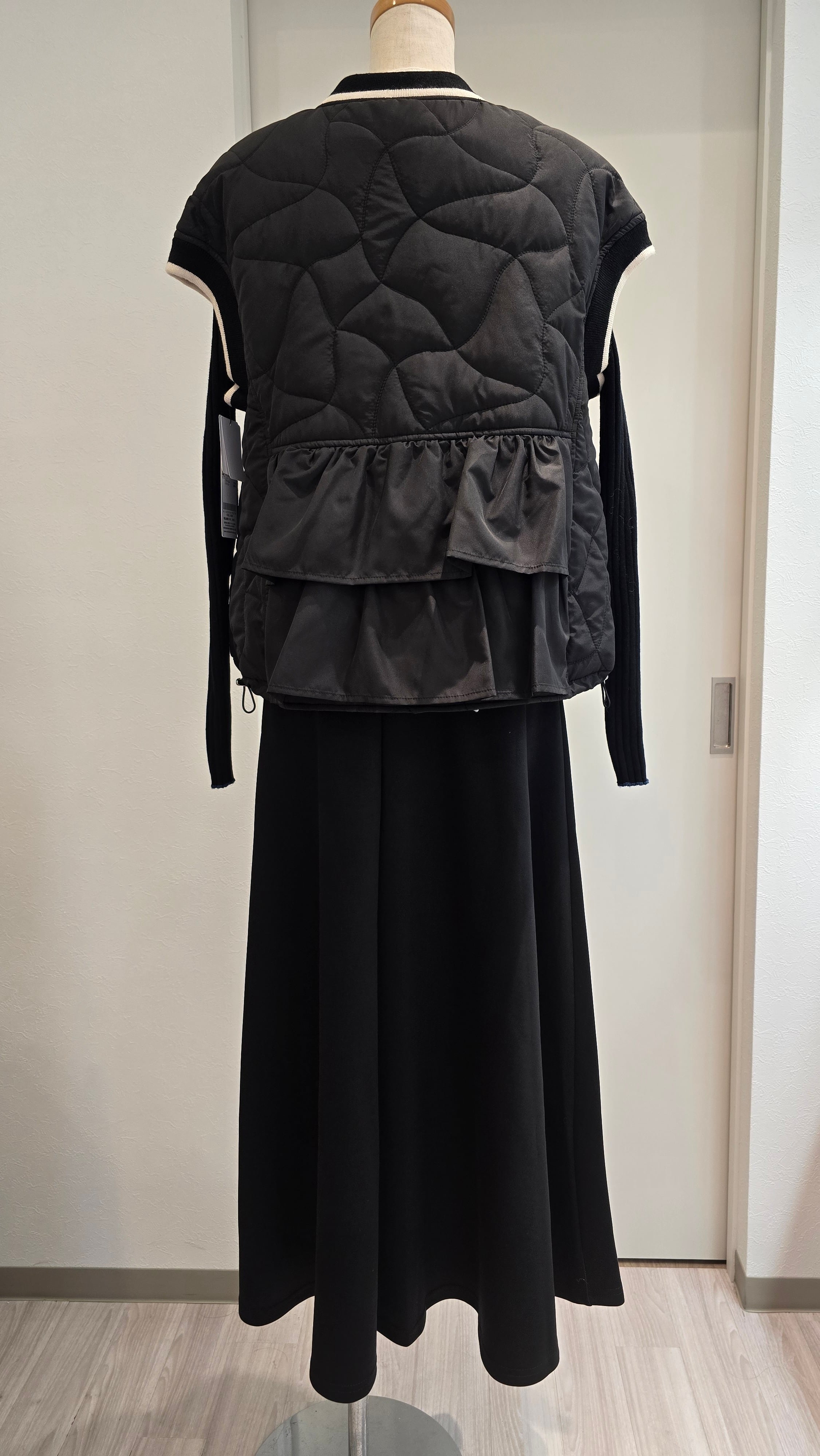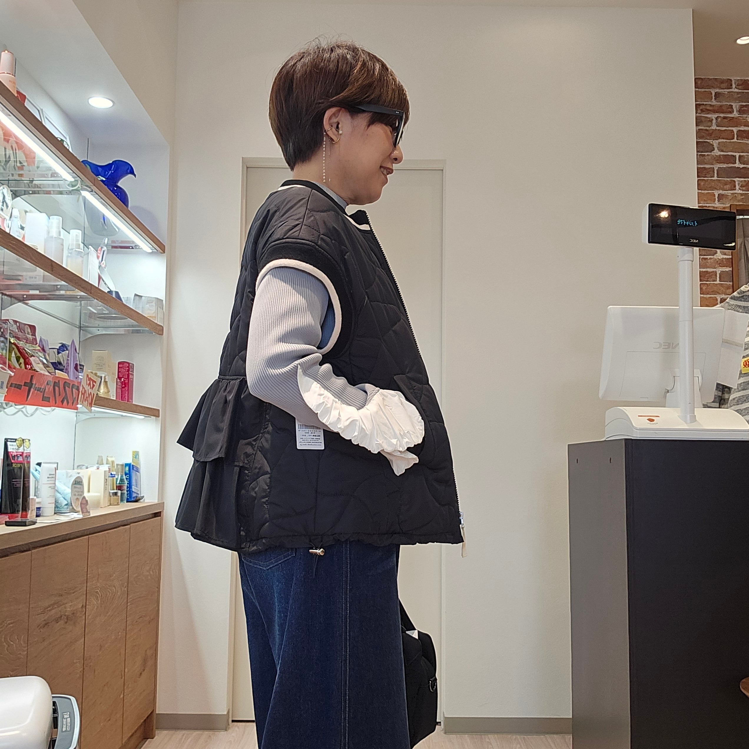 この「バックフリルベスト」は、軽やかさと暖かさを兼ね備えた魅力的なアイテムです!特にバックフリルのデザインが、バックスタイルにアクセントを与え、個性的な印象を演出します。さらに、腕回りと首回りに施された白線が引き締まった印象を与えるポイントとなり、洗練されたスタイルをサポートします。
