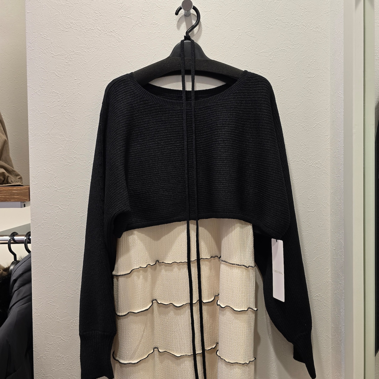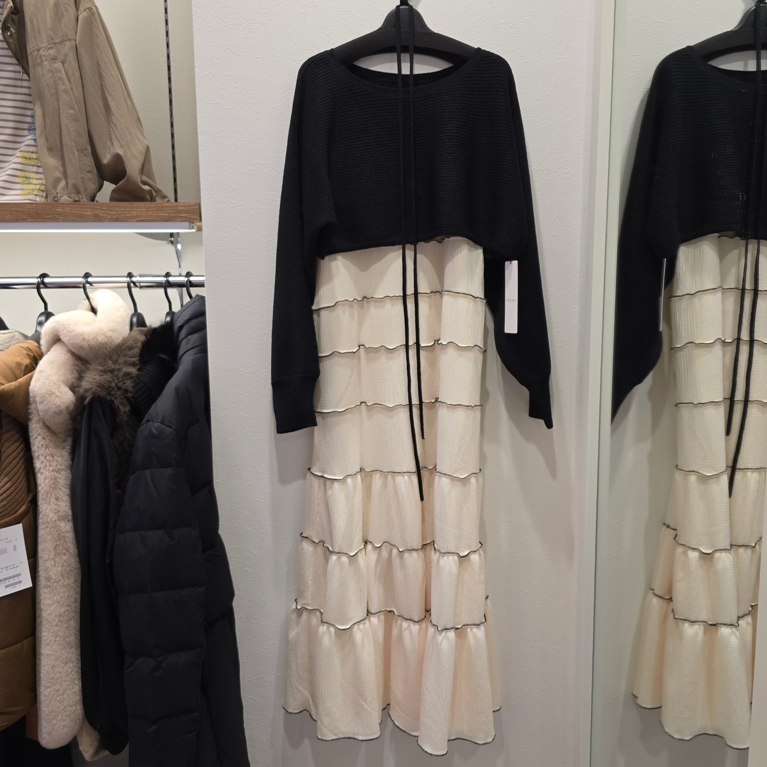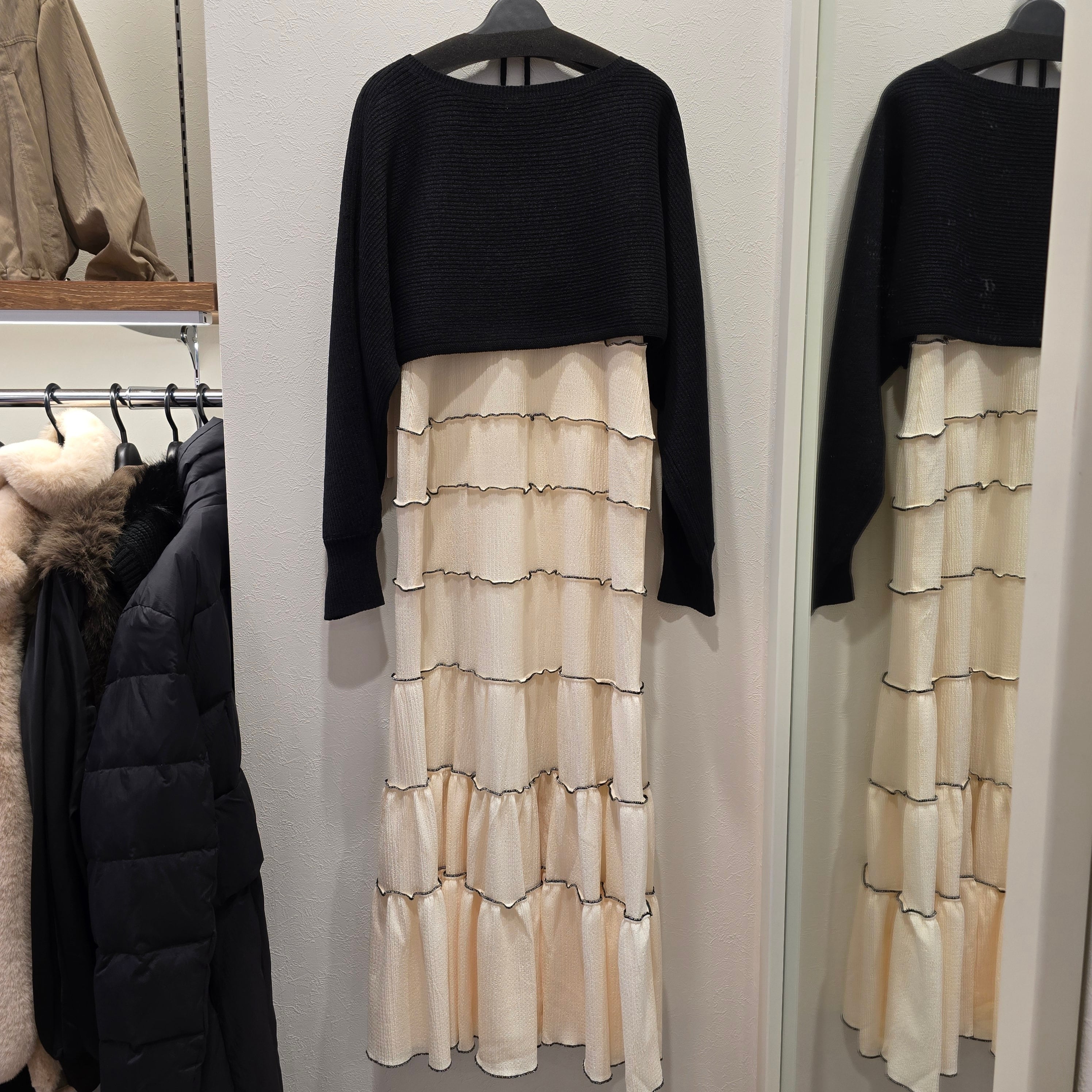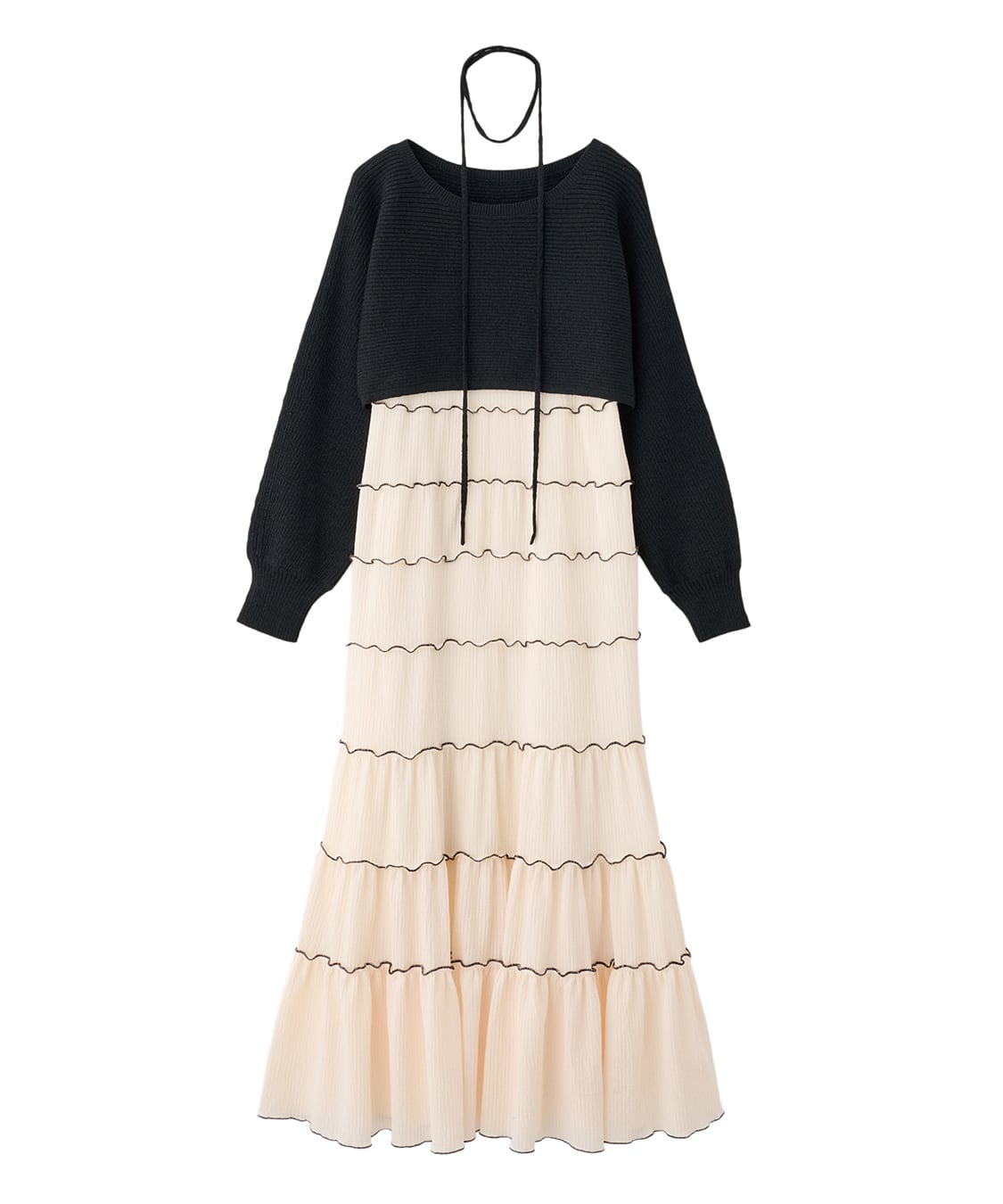 クロップドニット×メローティアードキャミワンピース