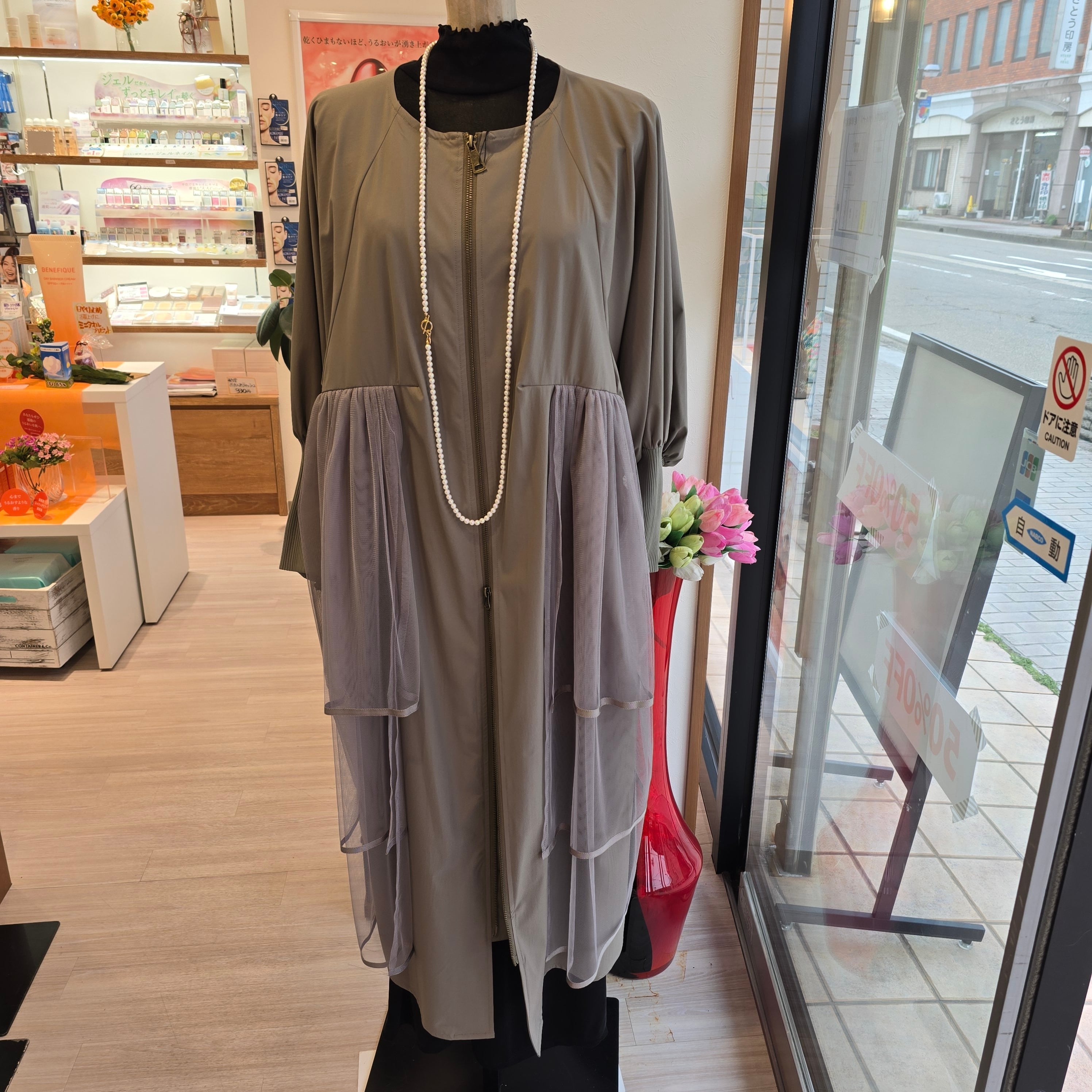 個性的でお洒落な『ガレナ』バックギャザーコートワンピースが、あなたのワードローブに新たな魅力を加えます!ティアードチュールフリルがドッキングしたデザインは、様々なシーンで活躍し、目を引くアイテムです。落ち着いたモカカラーは、どんなスタイルにも自然に溶け込み、コーディネートを格上げします。