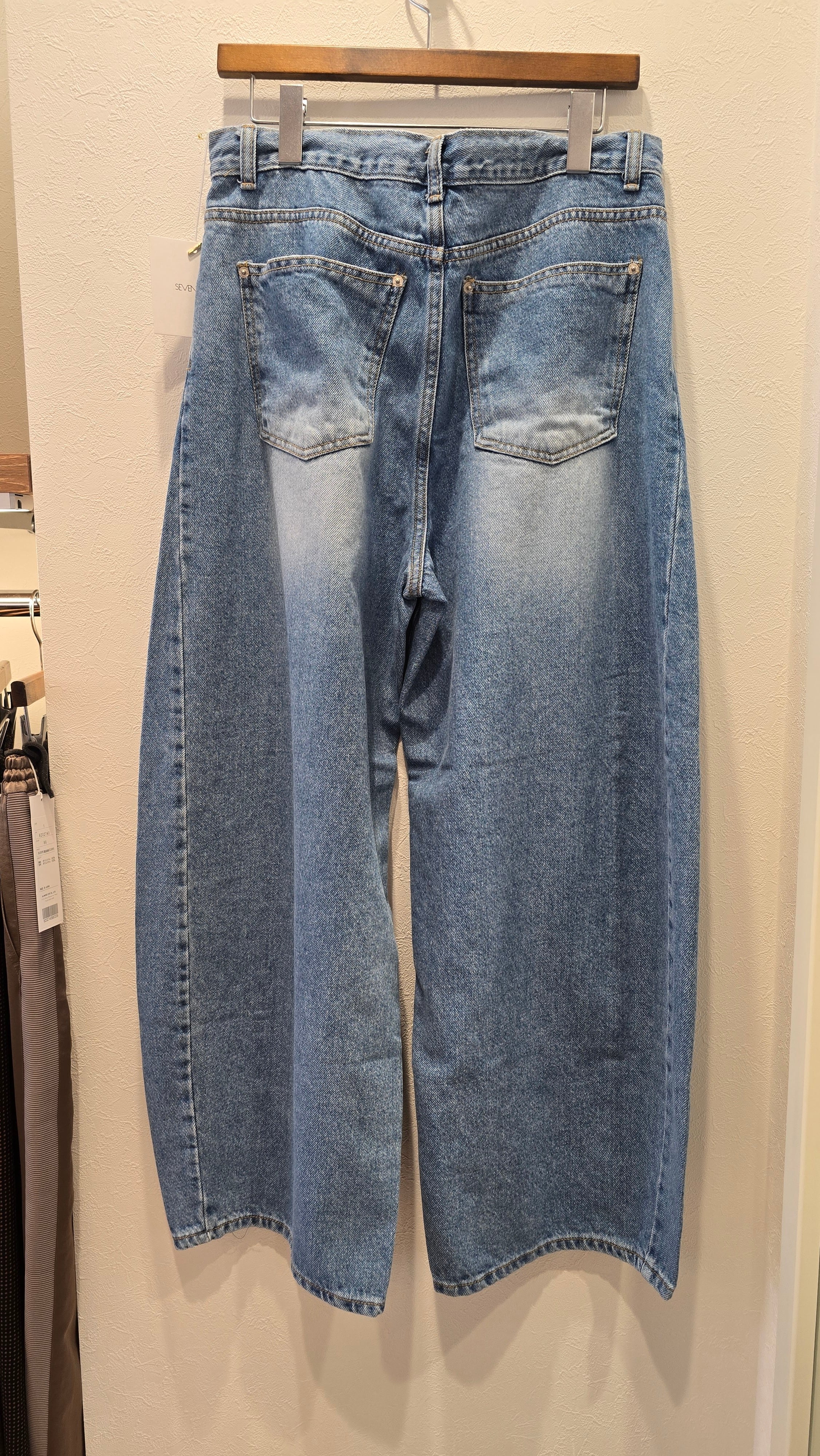 この『7days』ウエストドロストカーブデニムパンツは、トレンド感溢れるワイドなカーブシルエットが魅力の一着です!ウエスト部分のドロスト仕様が特徴で、自由にサイズ調整が可能。どんな体型にもフィットし、快適な着用感が得られます。