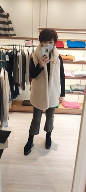 ファーの柔らかさとスエードのマットな質感が絶妙に組み合わさり、シンプルなコーデに華を添えます。デニムと合わせたカジュアルスタイルや、スカートと組み合わせたフェミニンな装いにもぴったりです。この1枚で、さまざまなスタイリングが可能となります!
