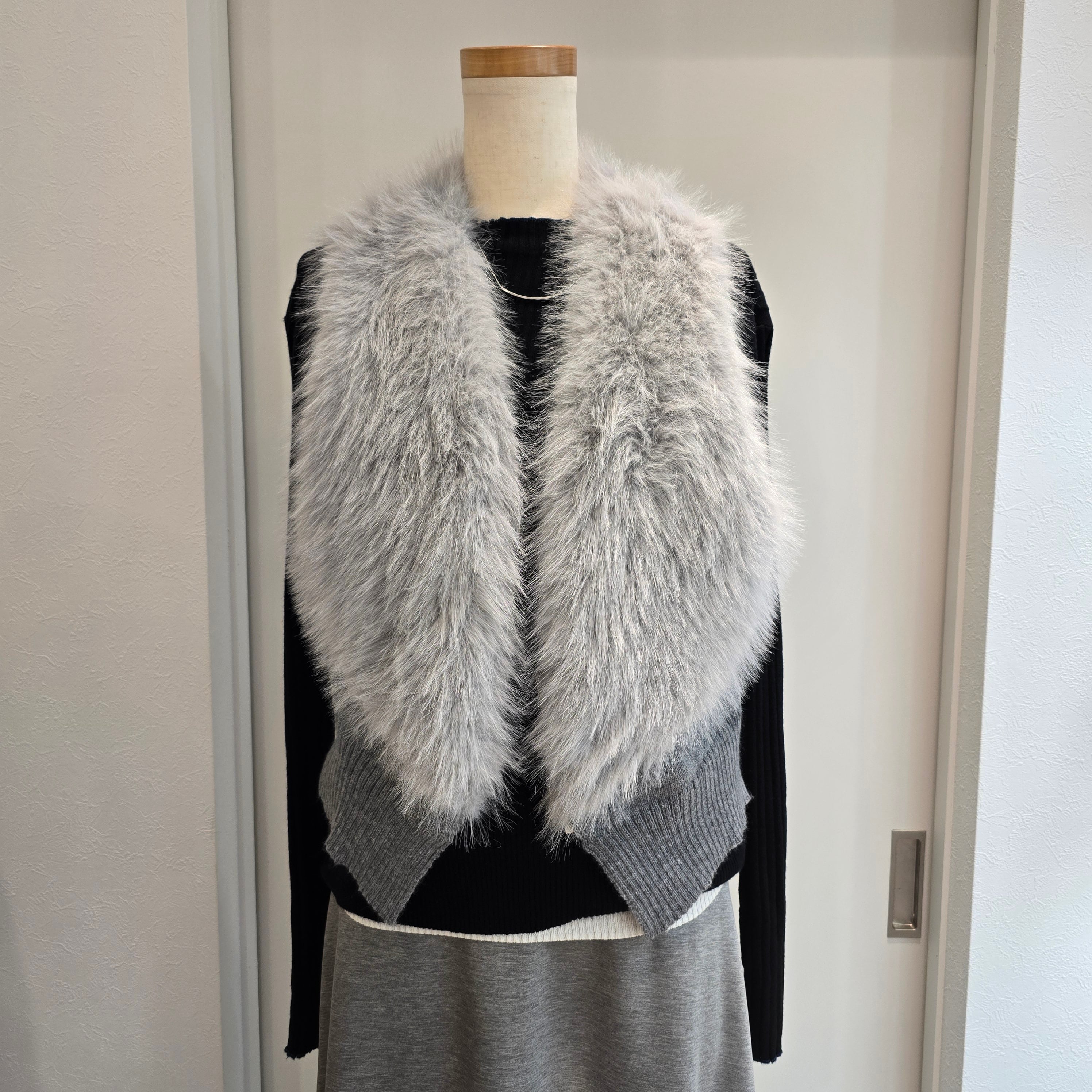華やかさと温かさを兼ね備えた、パール付きファーベスト。短めのデザインがスタイリッシュで、重ね着にも最適です。パールの装飾がアクセントとなり、シンプルなコーディネートも華やかに仕上げてくれます。寒い季節の必須アイテムとして、心地よいファーの肌触りをお楽しみください。