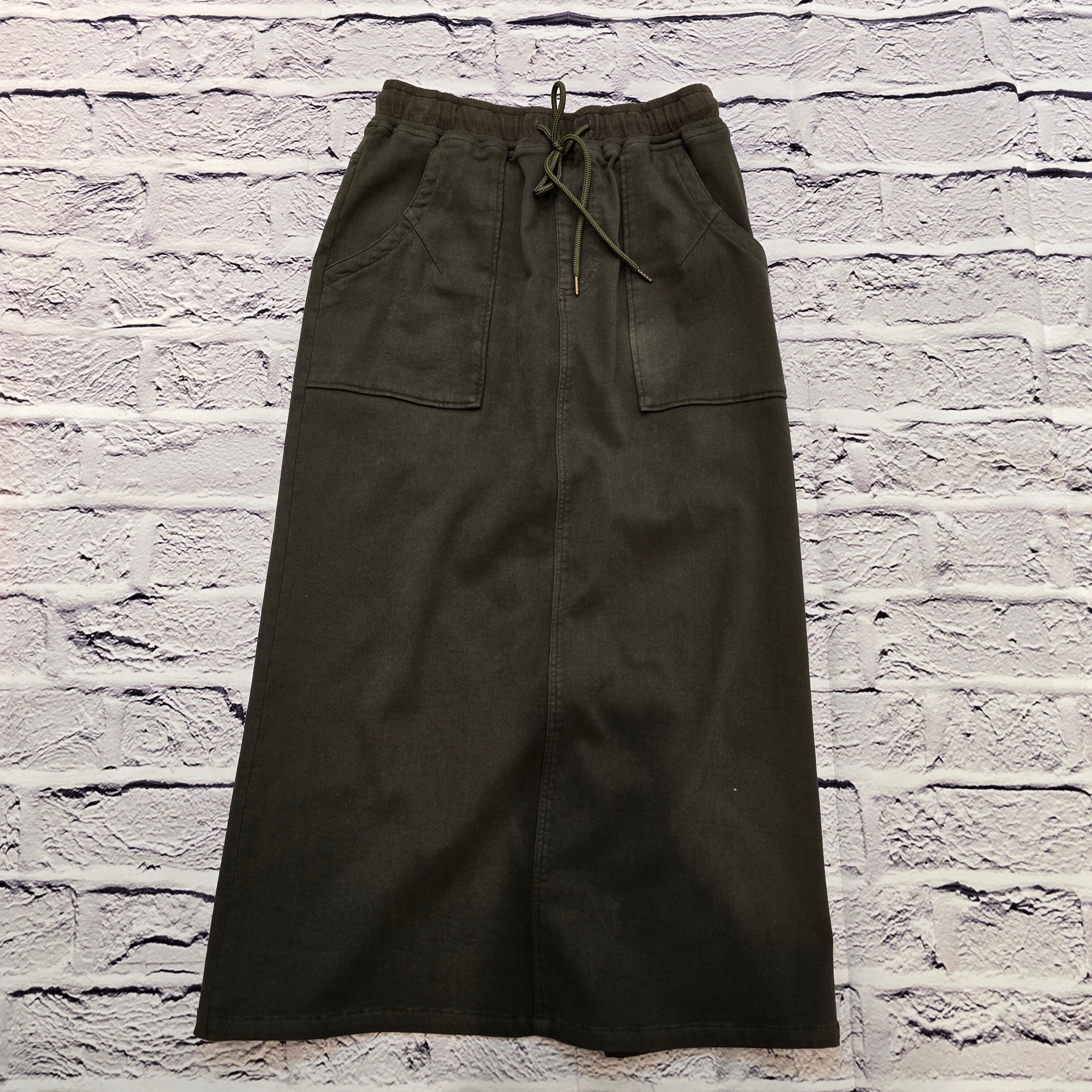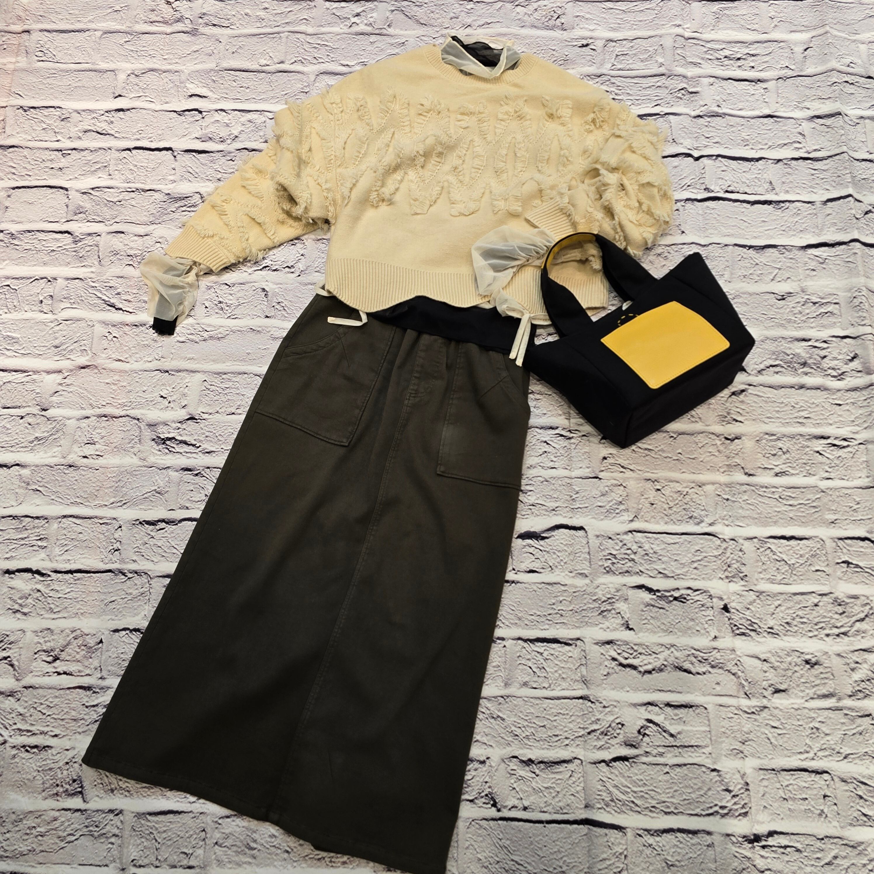 魅力的なカーキ色のタイトスカート【アティーヴォ】が新登場しました!伸縮性に優れた柔らかい生地は、心地よいフィット感を実現し、動きやすさを提供します。シンプルながらも洗練されたデザインで、さまざまなシーンで活躍する一着です。