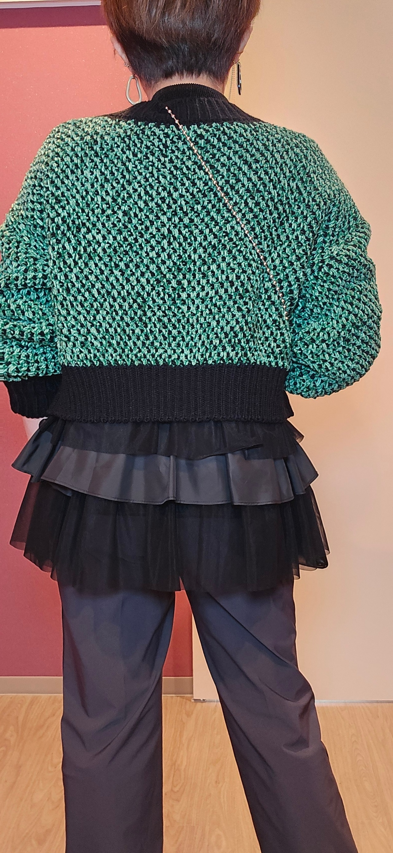デニムやスカートと組み合わせて、日常のカジュアルコーディネートに取り入れることができます。もちろん、パンツと合わせてクールなもスタイルも楽しめます。この一着は、あなたのワードローブに加えることで、より豊かなスタイリングの可能性を広げる素敵なアイテムです!