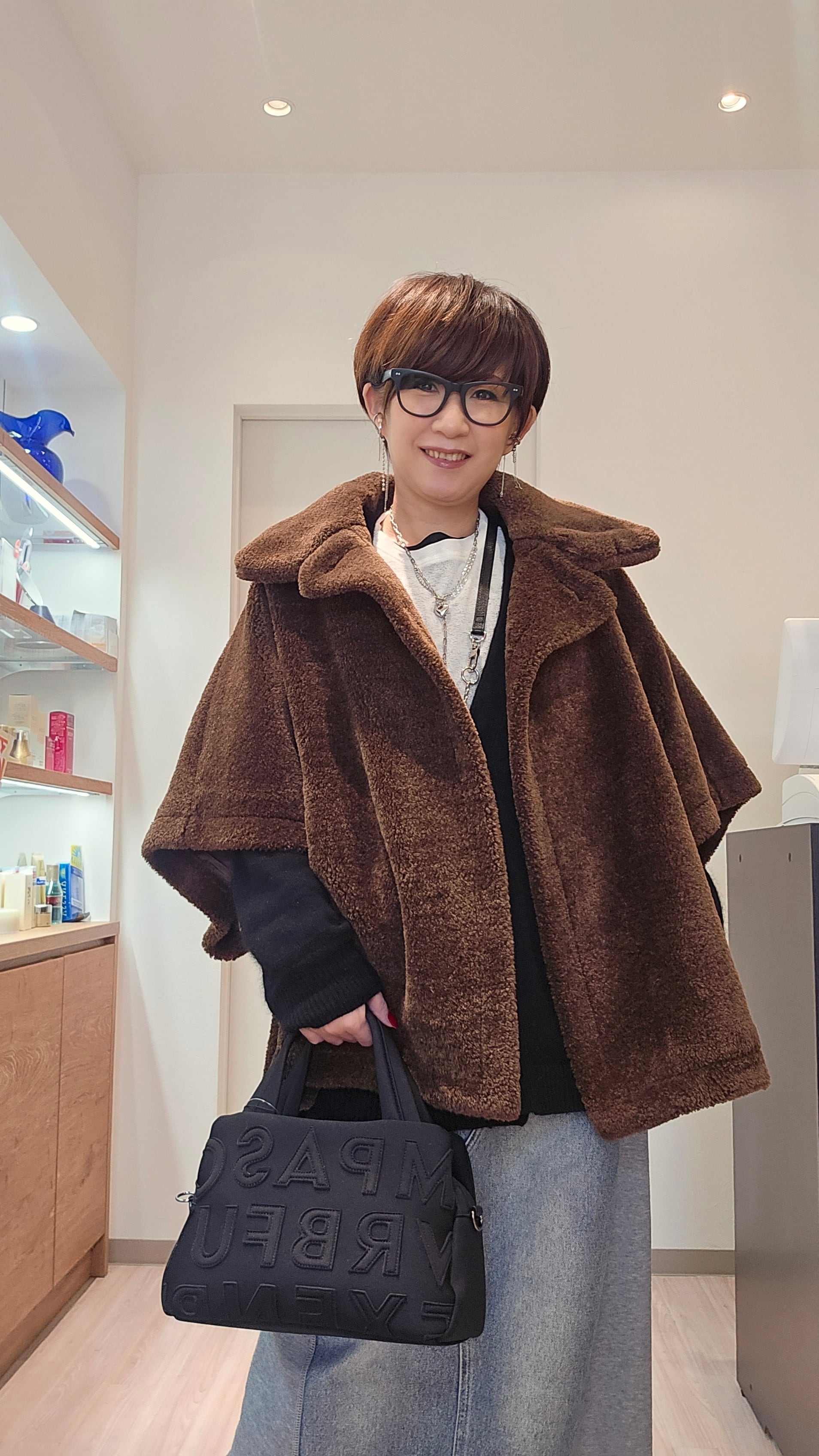 ふわふわとしたボア素材が心地よい【ボアコート】が新登場しました!ポンチョタイプのデザインは、ラフに羽織るだけでスタイリングが決まる優れものです。ポリエステル100%の裏地が、滑らかな着心地を提供し、肌寒い季節でも快適に過ごすことができます。