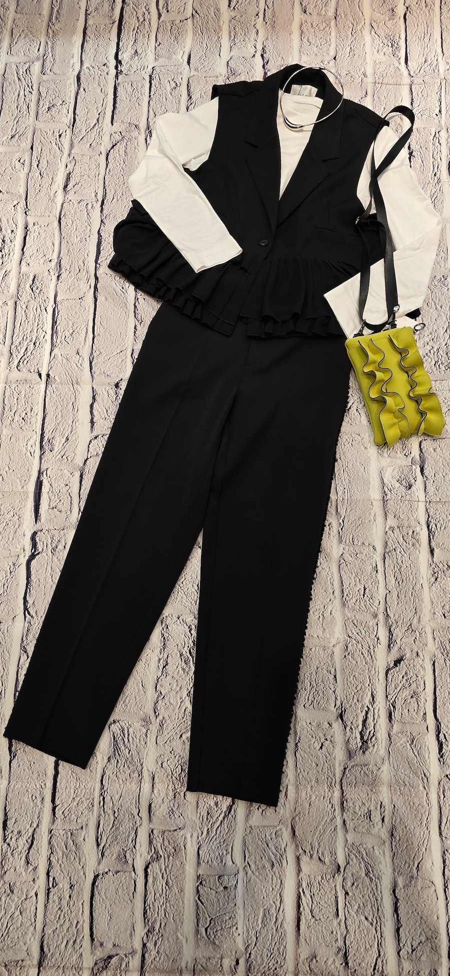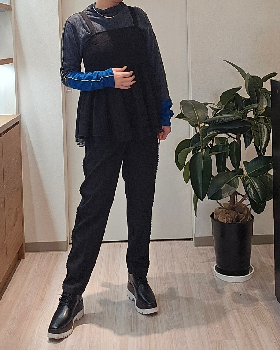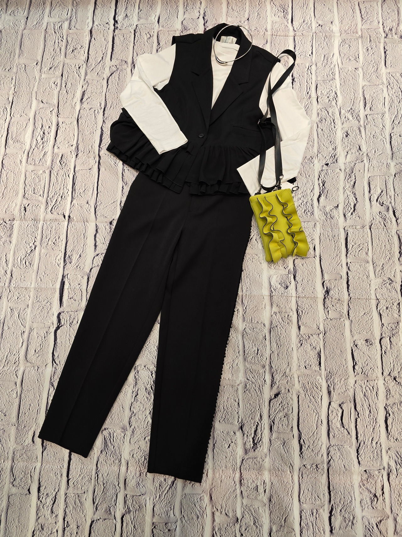 シンプルなトップスと合わせることで洗練されたコーディネートを楽しむことができ、オフィススタイルやカジュアルなお出かけにもピッタリなアイテムです。サイドのブレードが絶妙なアクセントとなり、大人の女性が求めるスタイルを実現します。