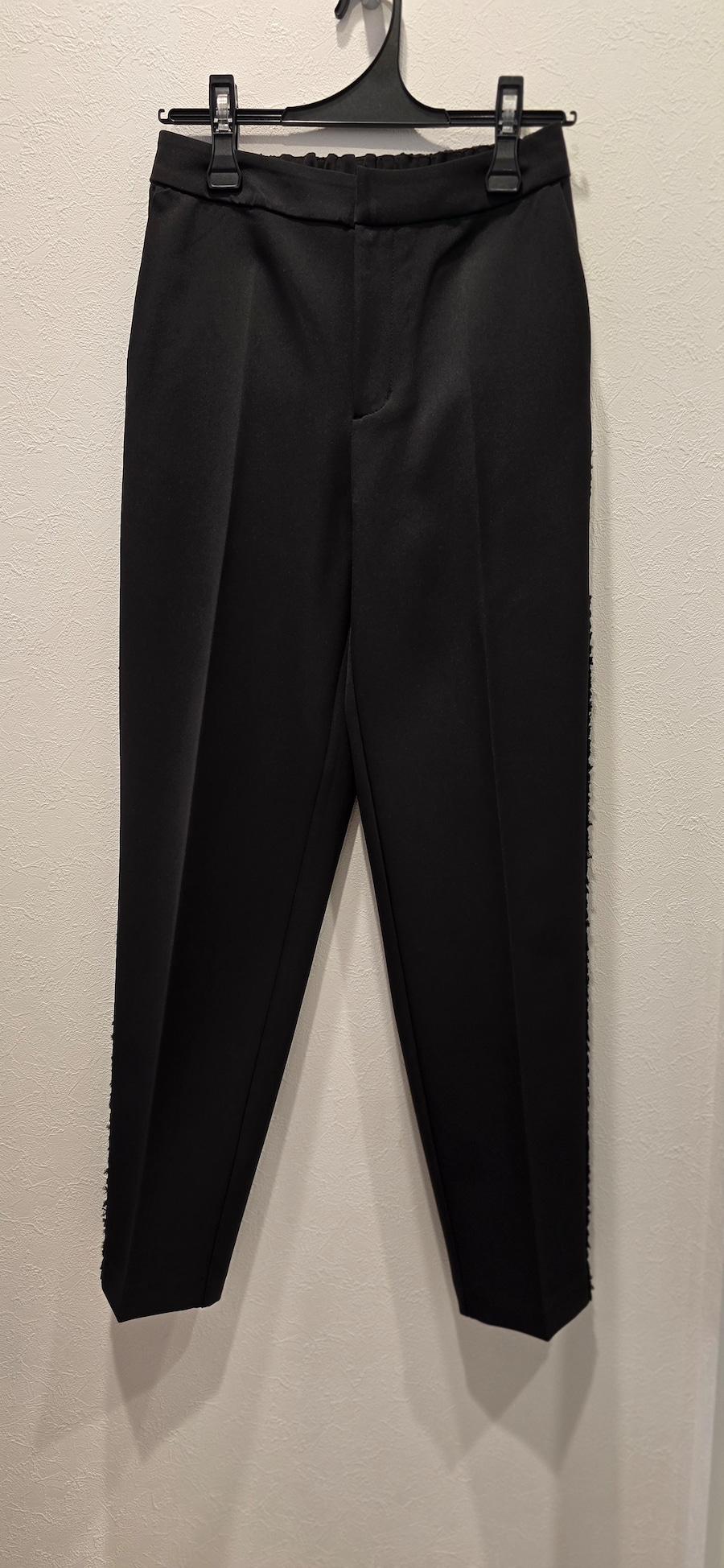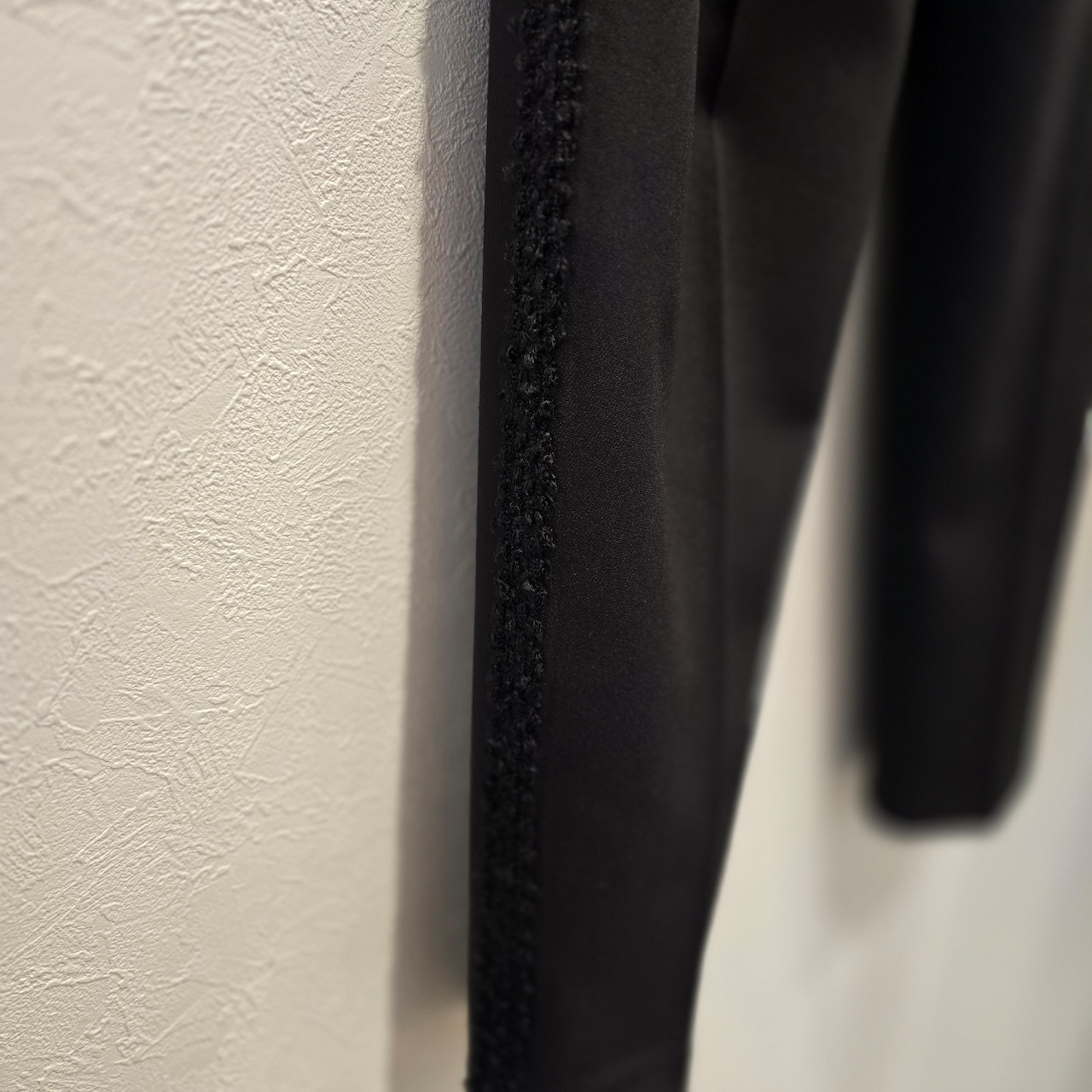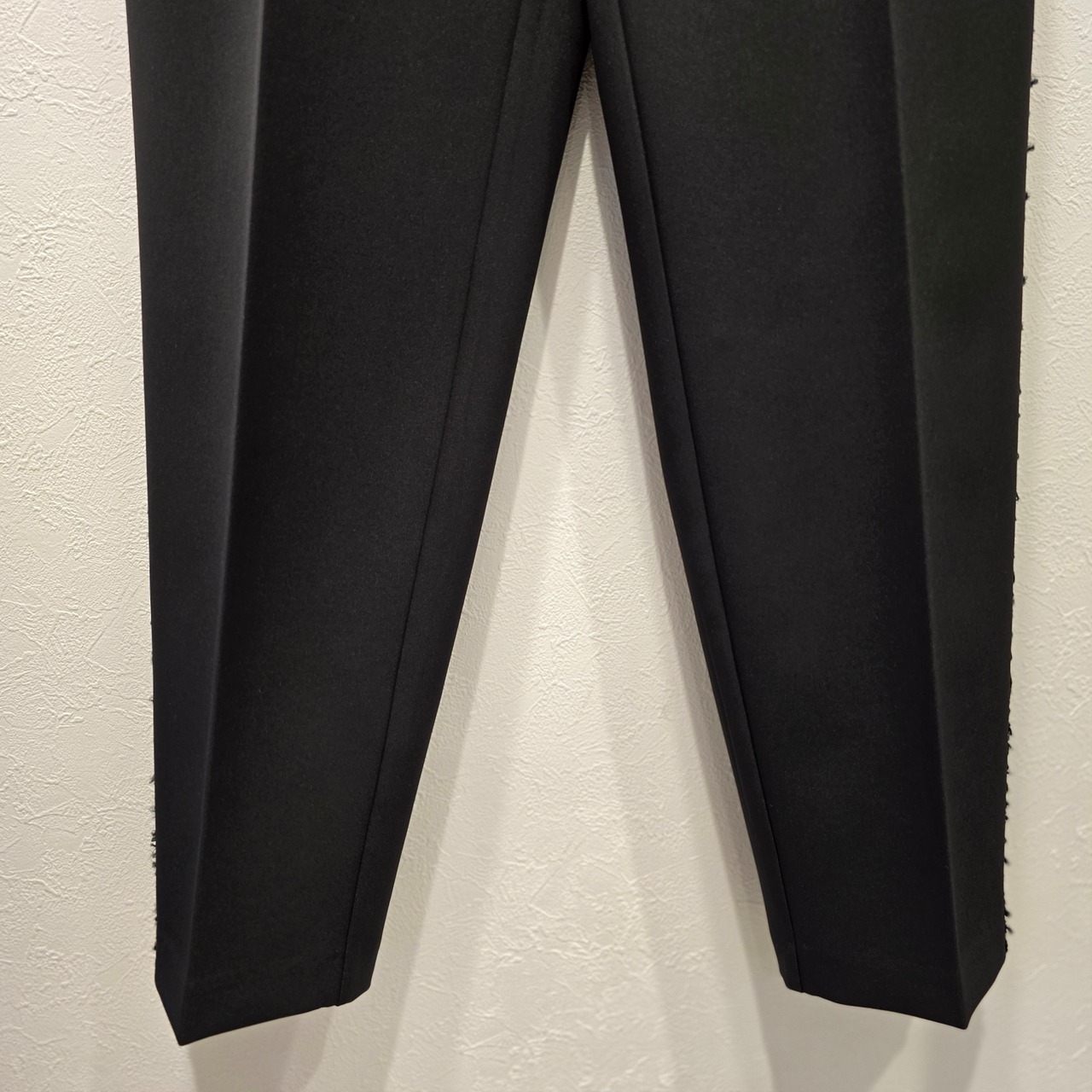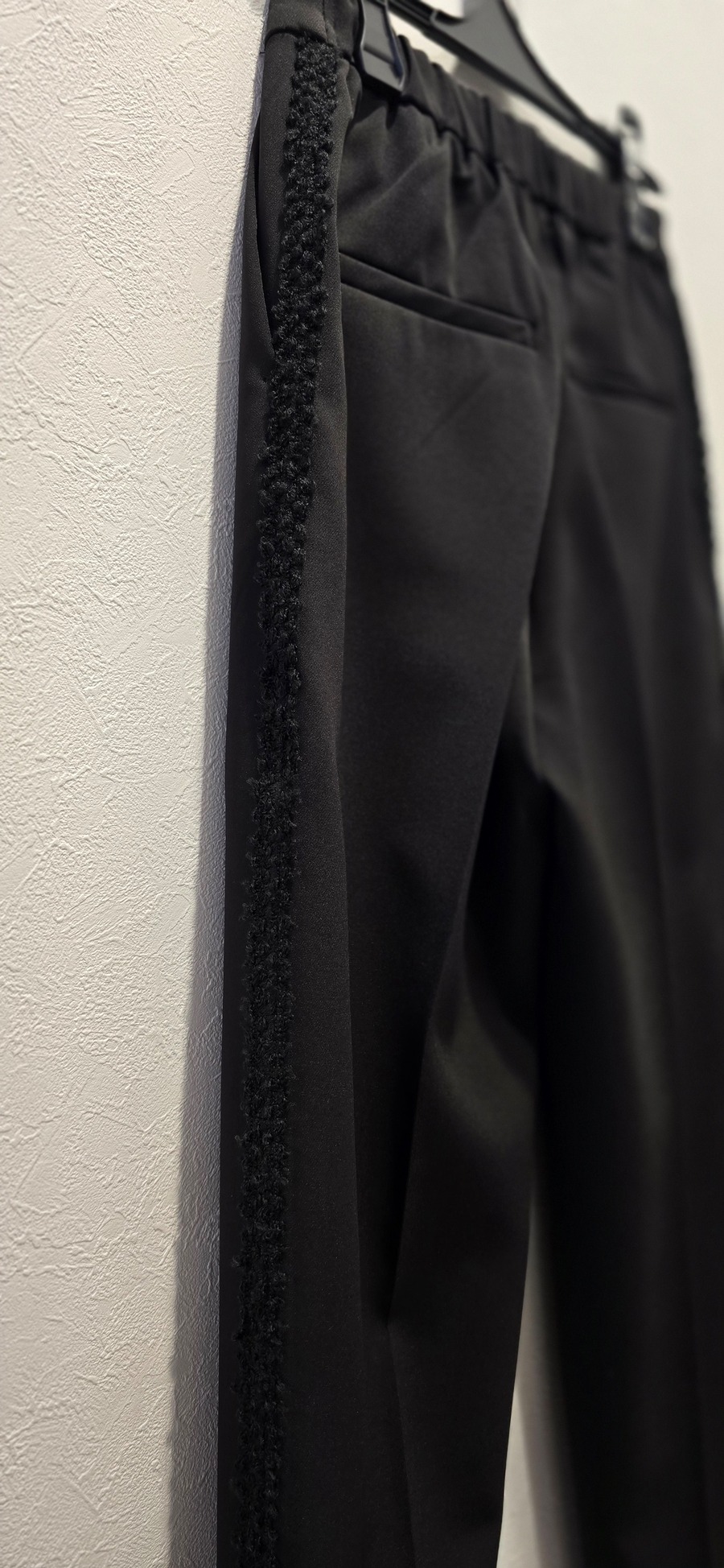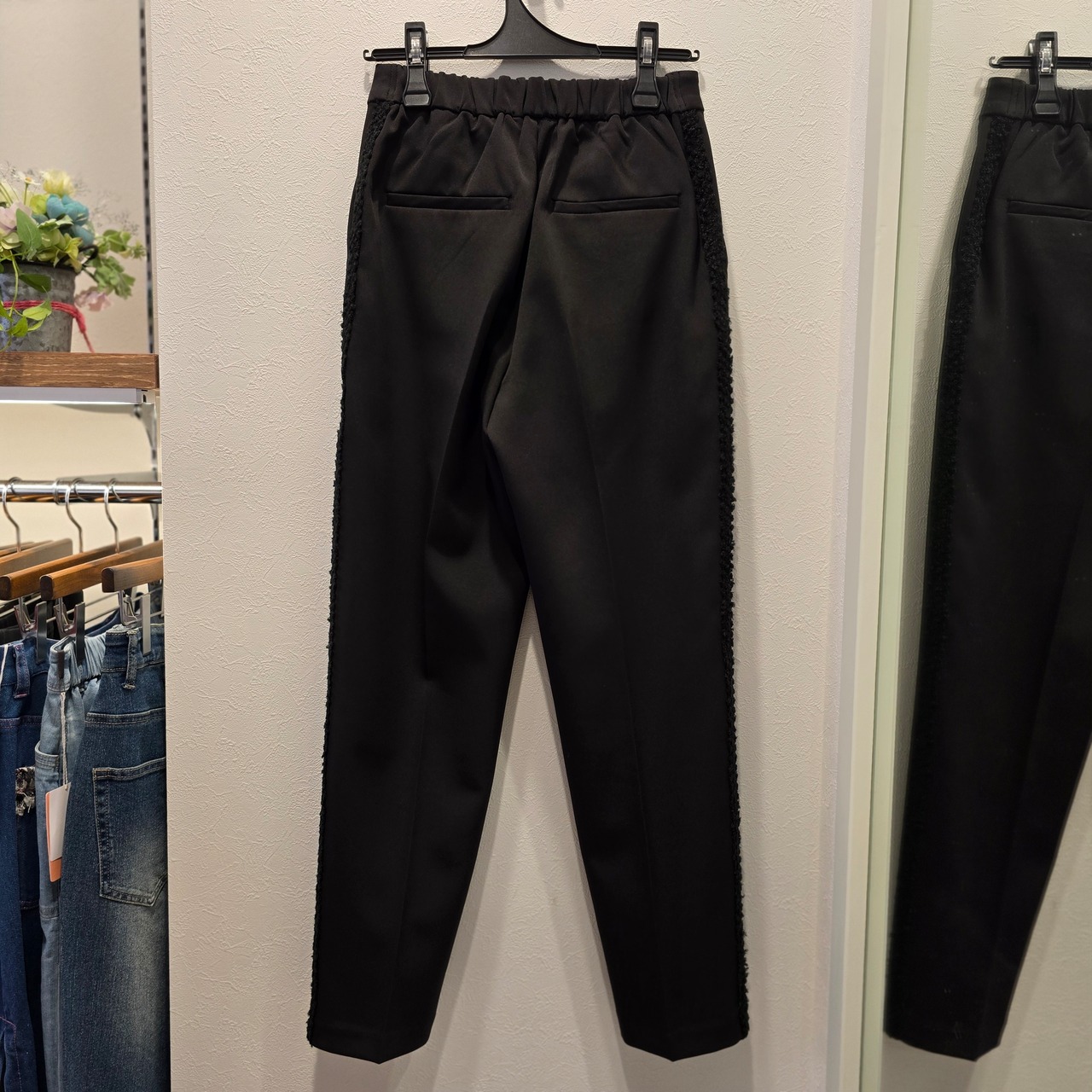 スタイリッシュなサイドブレードがポイントのパンツ。やや光沢感のある生地が魅力で、セレモニーシーンから普段使いまで幅広くお使いいただけます。伸縮性がややあり、動きやすさを追求したデザインですので、日常のアクティビティにも最適です。